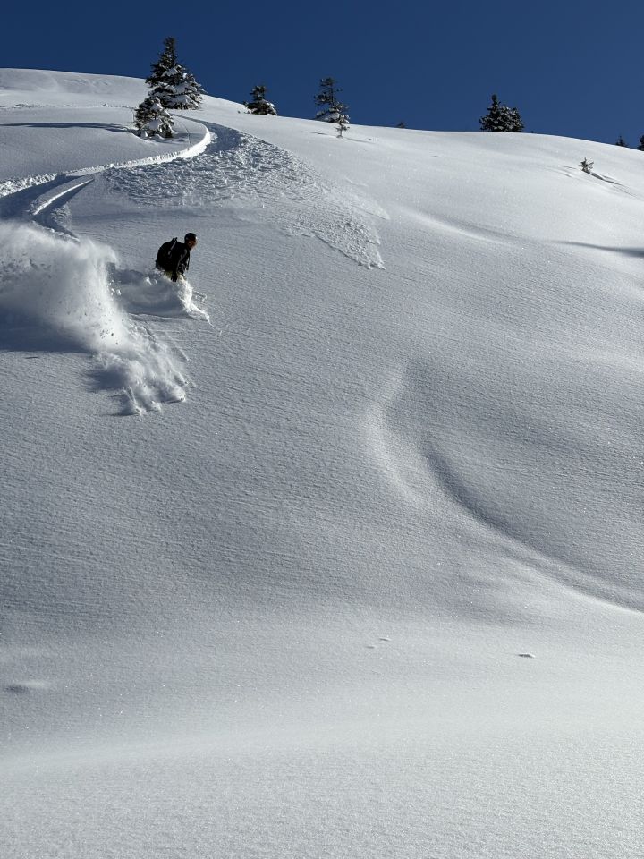 -12 ° beim Klöntalersee, -9 ° beim Startpunkt. Ab 08:00 kein Platz mehr für ca. 10 Autos vorhanden. Gute Spur bis nach oben. Alles Pulver, ab 2000m mehr verblassen und Obacht auf Steine. Abfahrten wurden sehr variabel gehalten trotz Wildschutzzone. Drohnen und Leinenfreie Hunde waren auch vorhanden. Südseitig und Sonnenflanke haben schon einen Deckel.