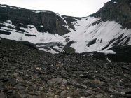 Das Firnfeld zum Zackengrat weist noch keine blanken Stellen auf, hingegen der Aufschwung zum Vorgipfel apert langsam aus.