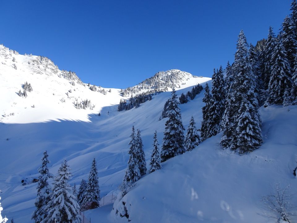 Schnee: 20-30cm Pulverschnee auf guter Unterlage, einzig einige Geländerücken etwas schwach bedeckt(abgeblasen), Grundsätzlich aber top