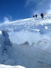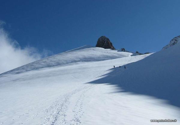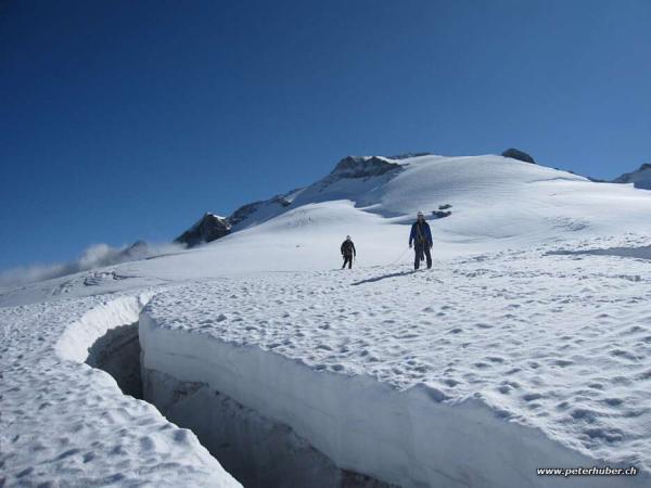 Kaum Blankeisstellen. Etliche Spalten auf ca. 3'000 m die bei guter Sicht gut umgangen werden können. Bei Nebel helfen die alte Spuren ;-)