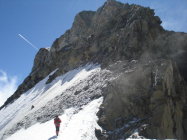 Iswändli schon weitgehend schneefrei. Gletscher vielerorts schneefrei. Spalten meist gut sichtbar.