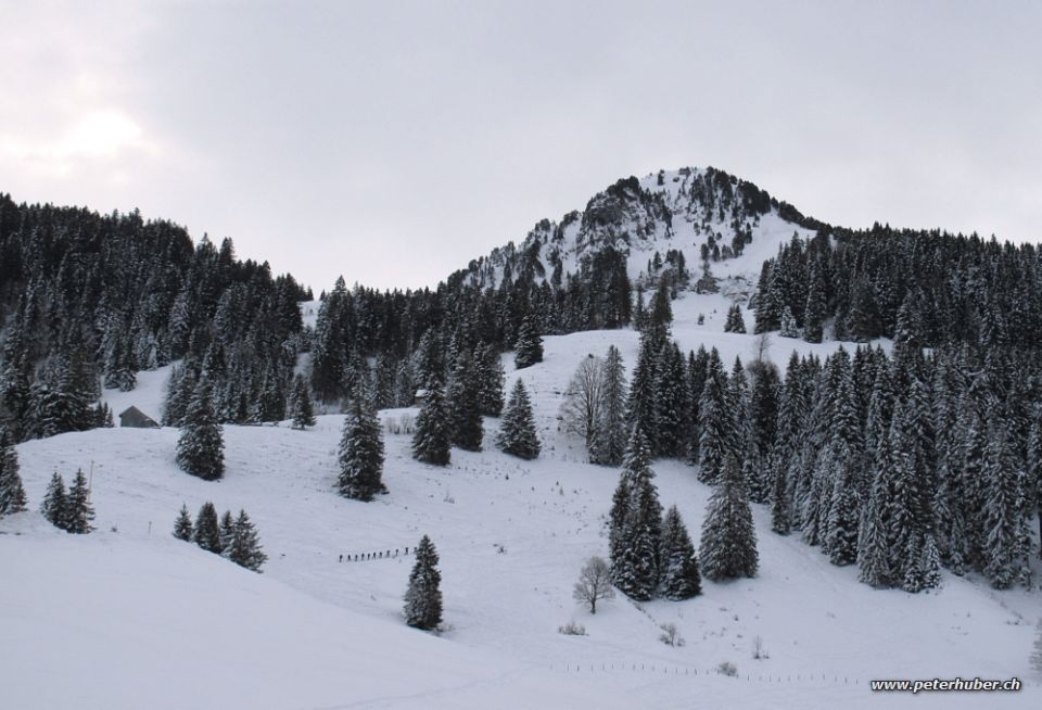 Abfahrt: Der Neuschnee feuchtete schon etwas an. Trotzdem fand ich am Rand noch etwas unverspurtes Gelände. Die alten Spuren sind jedoch zu spüren. Bei Grossweid ist vorsichtige Fahrweise über die Graskuppen angesagt. Darunter im Flachen wieder besser.