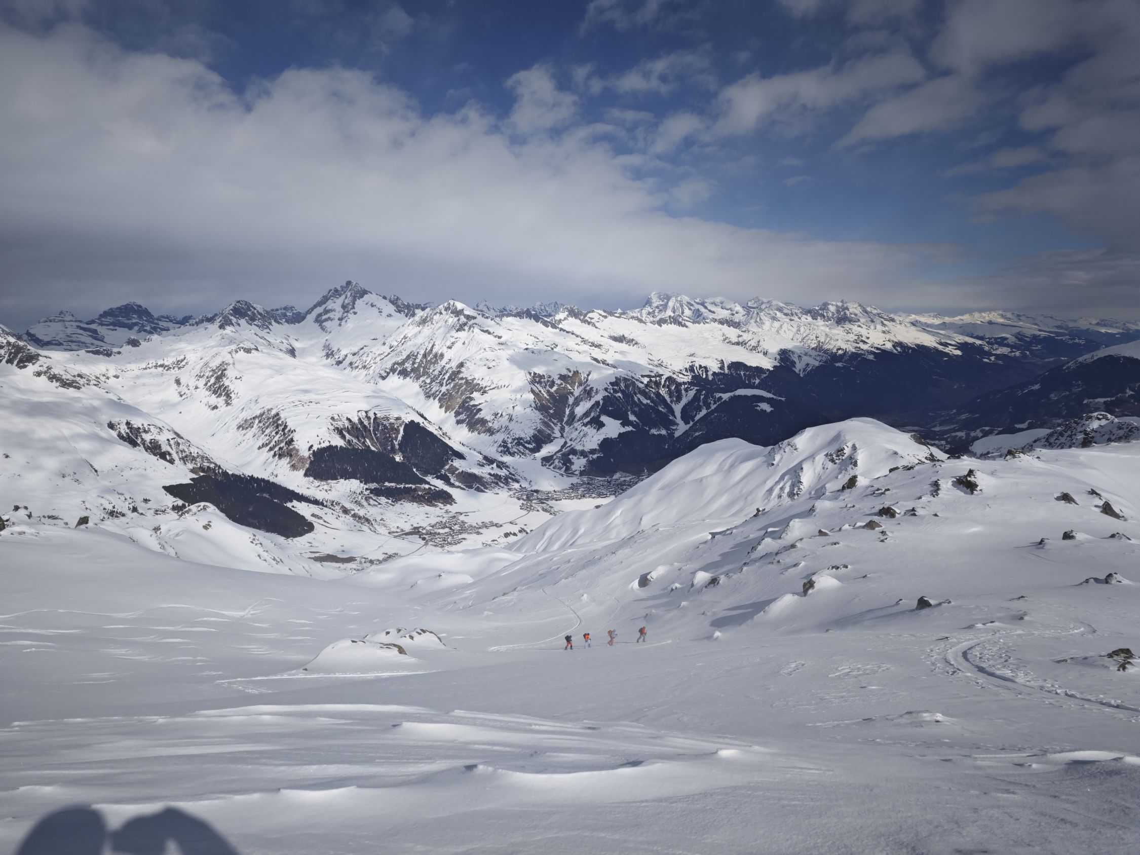 Bei der Seilbahn meist guten Pulver und gespurt. Bein den Hügel bis zum Punkt 2489 immer oft durch den Nordwind ausgeblasen aber teils genügend Schnee zum Spuren. Ab dem coupierten Gelände war der Schnee hervorragend. Die Abfahrt nach Rueras war ein Traum. Fast nur Pulver bis zum Wald, ab da etwas knackiger aber gut eingeschneit und machbar.