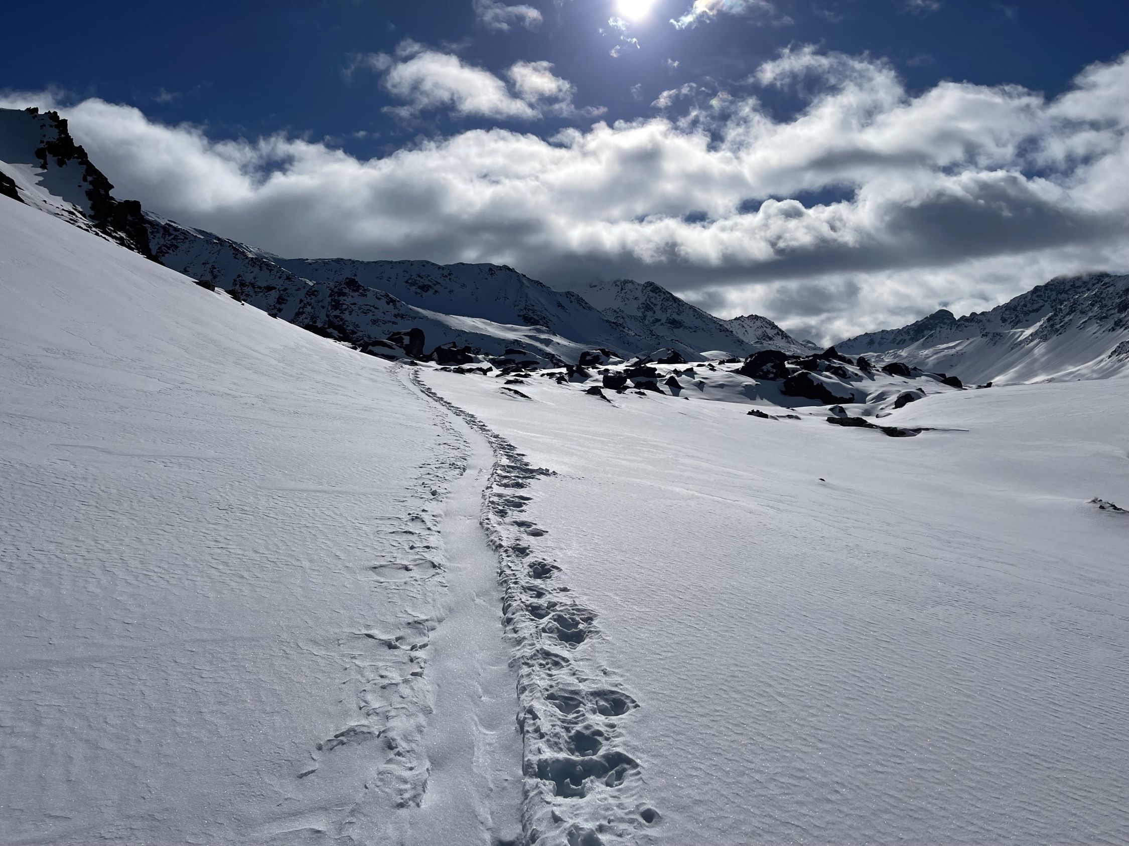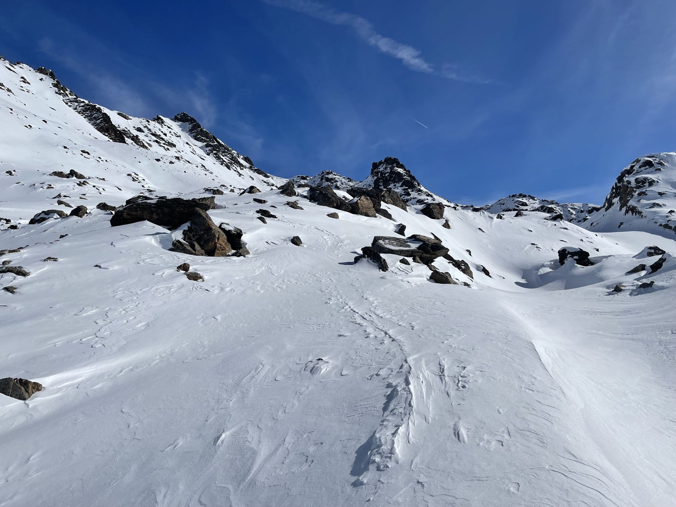 Bin von Pischa rübergequert, immer linkshaltend und an grossen Felsen vorbei ( nicht zu hoch queren). Dann auf der Normalroute weiter zum Gipfel. Ein Pickel war hilfreich aber nicht zwingend nötig.