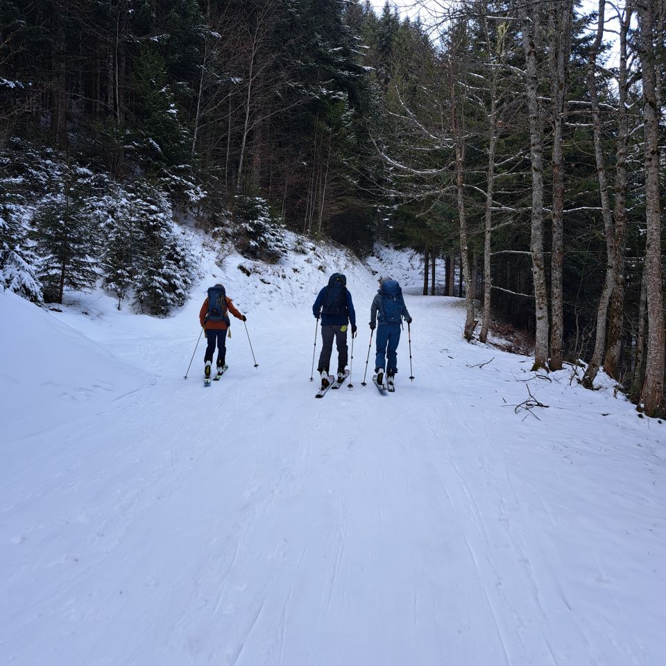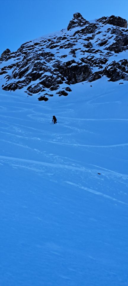 Sind Culi ab Scharte gefahren(meist-40°/bis 45° kurz/ S+)Forststrasse nur seeehr knapp Schnee durchgängig-rauf gut,runter knapp.ab Alp top eingeschneit-alles mit min 20 cm. schönem Pulver,Gespurt bis Gipfel(Scharte Einfahrt Culi).Oben super 20-30 Pulver,Engstelle kurz mit leichtem Winddeckel,kommt noch durch,Resthänge unten raus super fluffi Puder bis runter.Halt immer dies glasige Hartschicht unter Puder....Da einige von Col in Ausfahrtshang gezogen und vor uns bereits 5 das Culi runter sind Flanke doch schon gut gezeichnet.Aber noch top lohnend.