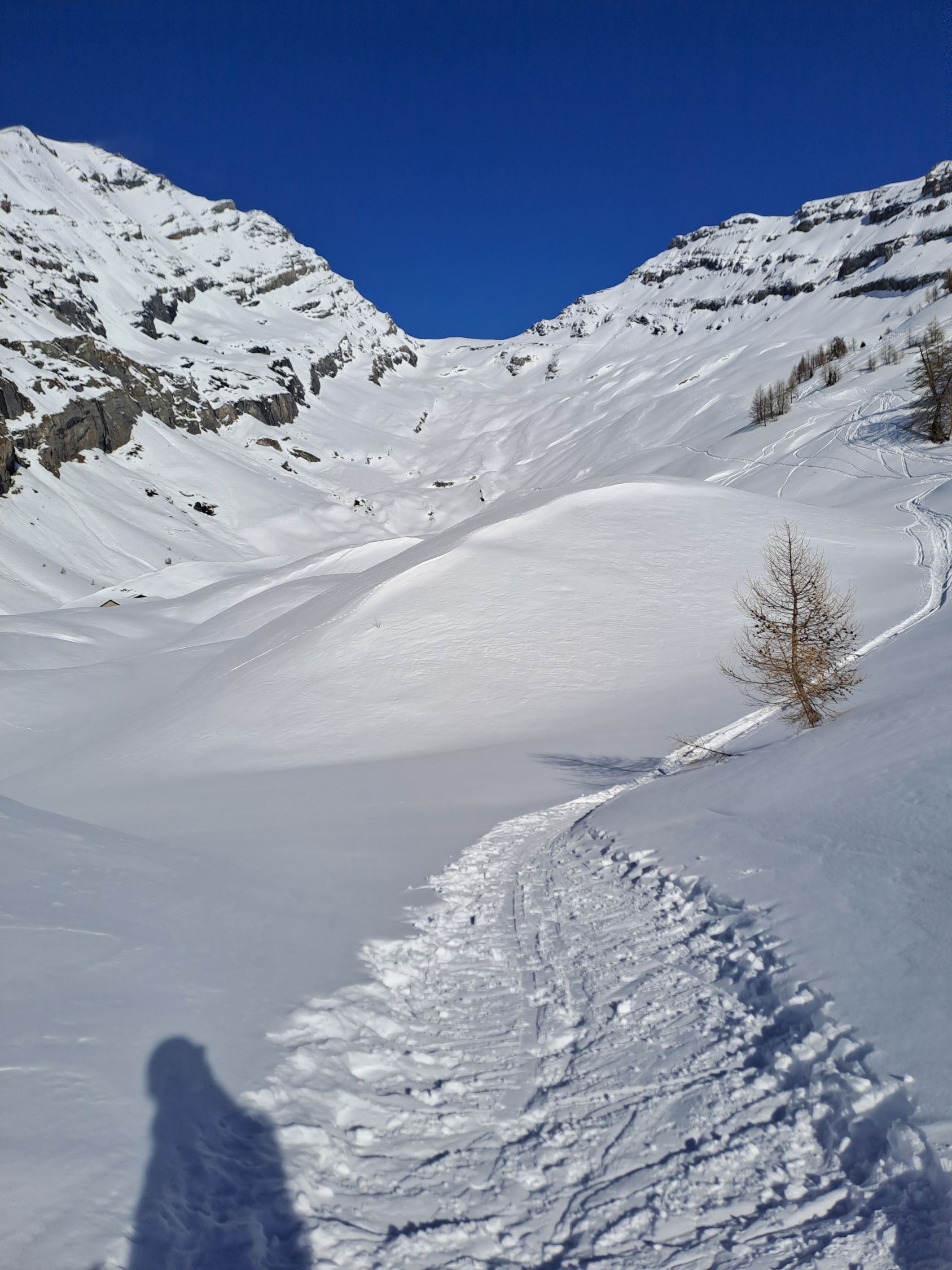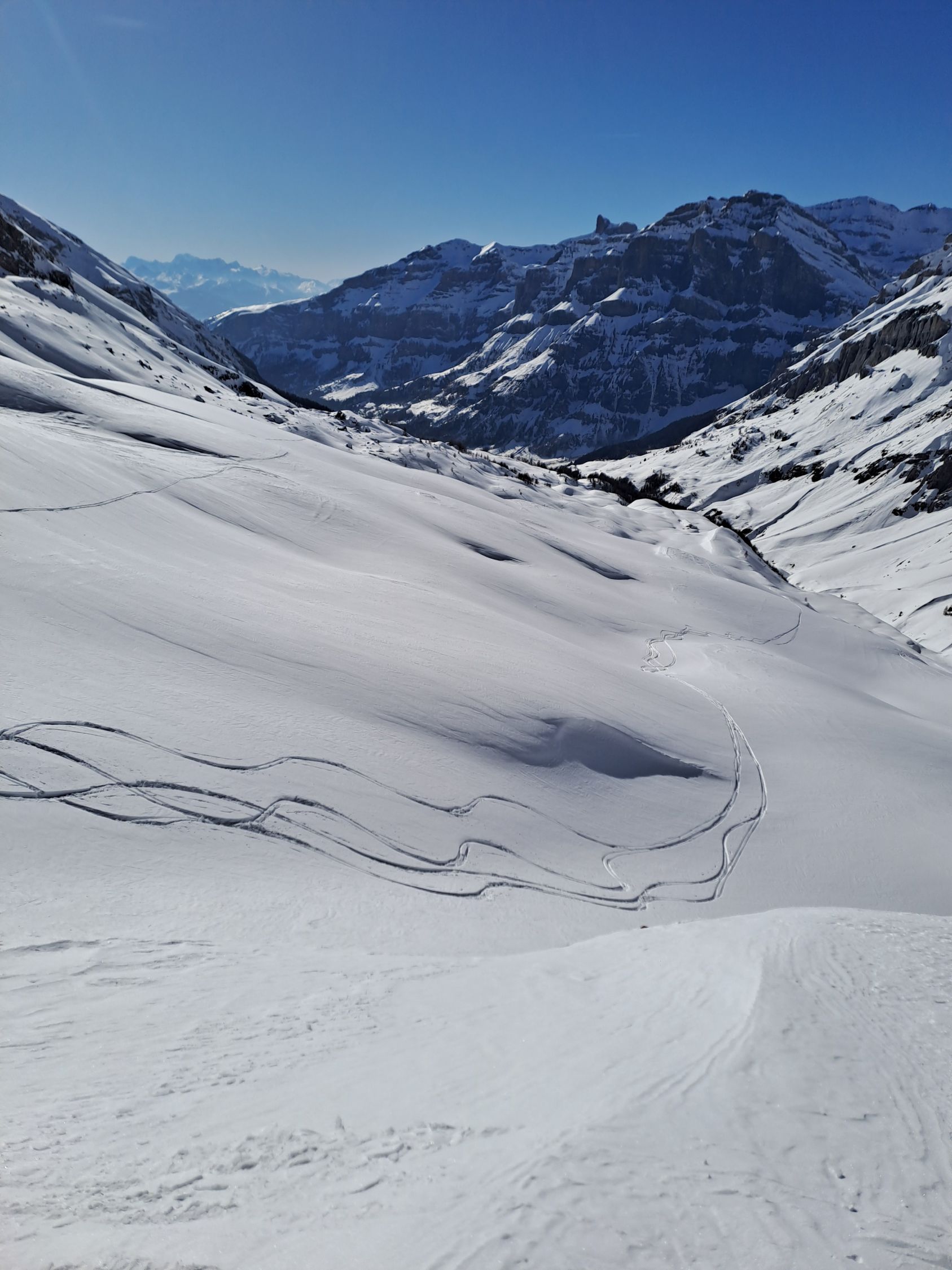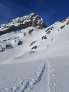 Durchgehend Schnee ab Ferden, Waldpassage im Aufstieg etwas eisig. Schnee im Mittelteil am Morgen gedeckelt. Bin über Gitzifurggu nach Leukerbad abgefahren. Dort am Nachmittag leicht feuchter Pulver, aber noch recht schön zu fahren.
