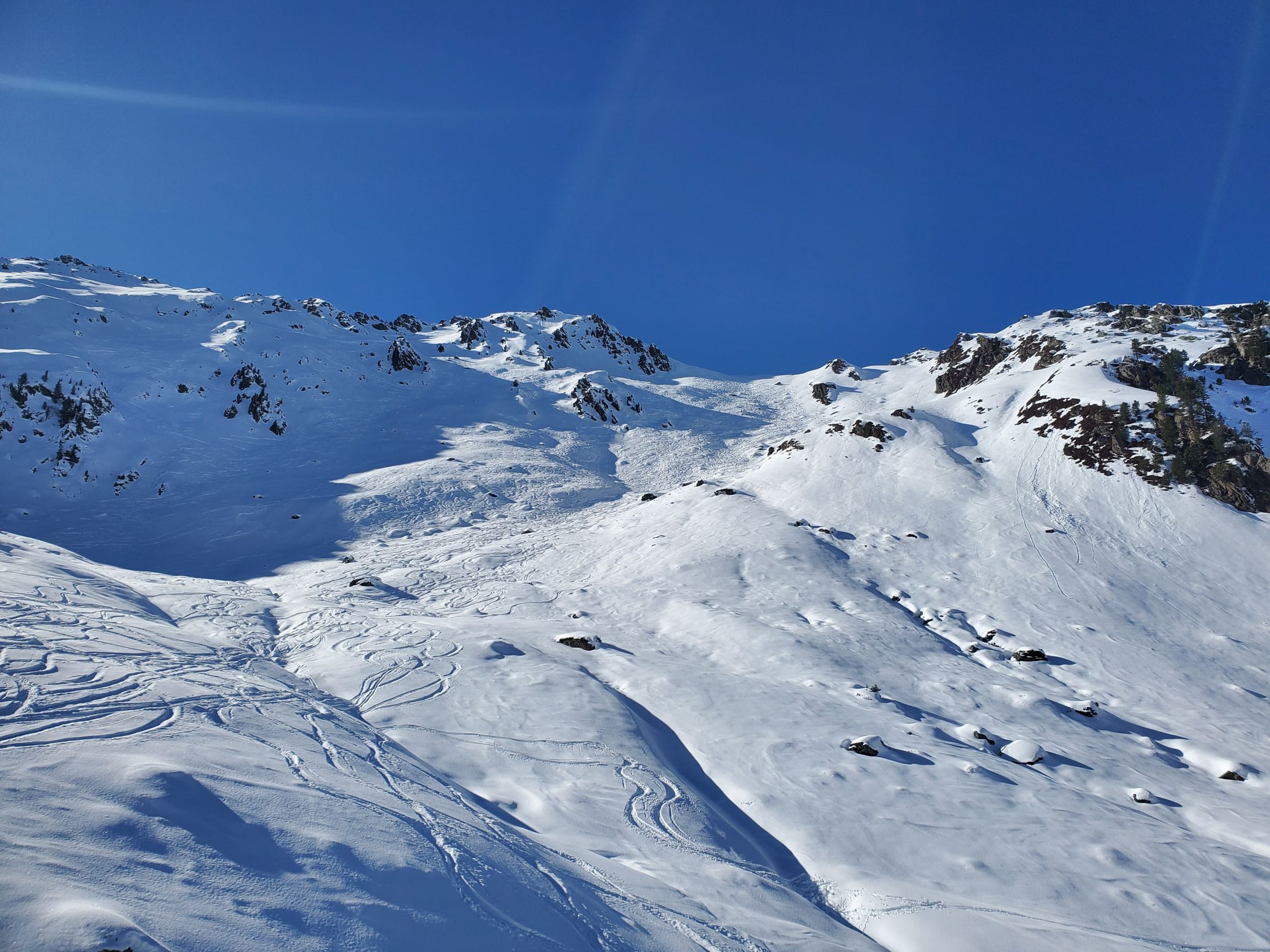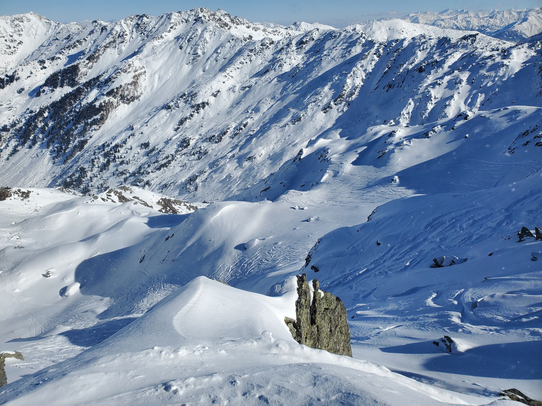 Schnee insgesamt zu wenig, aber für unsere Runde (Aufstieg aus dem langen Grund, zunächst zum Kastenwendenkopf; Abfahrt zurück zum Sattel; dann von Süden auf den Gipfel; Abfahrt hinab in den Frommgrund zurück zum Parkplatz) ausreichend; Schneeauflage im Waldaufstieg dürftig, besser Ski kurz tragen; dann aber genügend Schnee; super Pulver bei der Abfahrt vom Kastenwendenkopf, allerdings schon sehr verspurt; da der Nordhang aber sehr breit ist, wäre noch Platz für neue Linien; der Südanstieg zur Pallspitze geht zwischen den Felsen durch, würde ich in der Abfahrt nicht empfehlen, besser in den Frommgrund abfahren, hier genügend Schnee und in den schattigen Hängen sehr fluffig und schöner Pulver! die Fahrt den Frommgrund entlang ist möglich, allerdings an ein paar Stellen auf Steine aufpassen und runtertasten; insgesamt ein wunderschön sonniger Tag in einer der Schneelage angepassten sinnvollen Runde! Lawinengefahr sehr gering, stattdessen hohe Gefahr im Pulver auf einen oder mehrere Felsen aufzufahren;