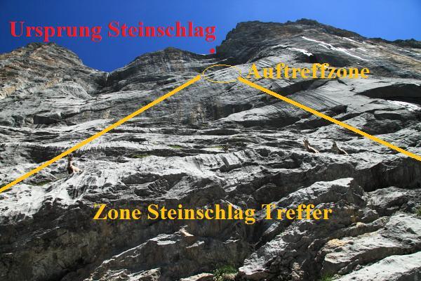 Es waren keine offensichtlichen Schneefelder am Gipfelband vorhanden, somit könnte der Auslöser eine erodierende Region oberhalb der Wand sein.