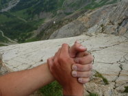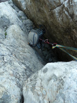 tatsächlich musste man sich zwischen zwei platten hocharbeiten.. mit rucksack no way.. diesen haben wir an einer schlinge hinterhergezogen!!