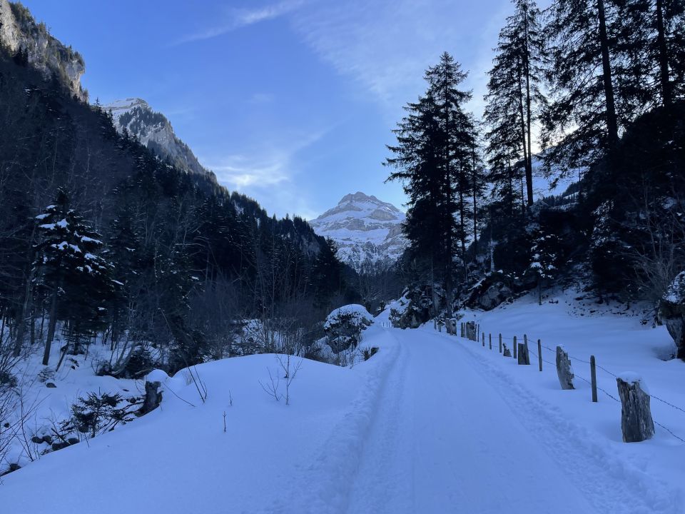 Eine Tour mit Längen, sowohl im Aufstieg als auch in der Abfahrt. Kurz nach dem Abzweig der Spiggengrundstrasse ist eine Brücke im Bau (Behelfsbrücke für zu Fuss oder Velo). Man kann die Tour aktuell daher gut auch per öV machen, da man mit dem Velo nicht viel gewinnt. Die Strasse ist zwar hinter der Baustelle, welche von Fahrzeugen nicht passiert werden kann, geräumt (-Schwand), jedoch nicht schwarz, so dass man bis auf die erste Kurve (aper) alles mit Ski gehen kann.
