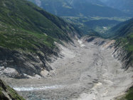 Beim Zustieg muss ein wegen des Gletscherrückgangs immer mehr abrutschender Graben gequert werden. Der alte Weg ist bereits nicht mehr passierbar. Es ist eine Frage der Zeit, wie lange der Graben noch passiert werden kann.