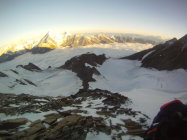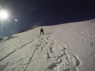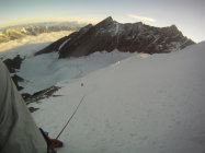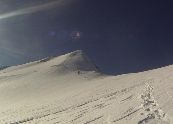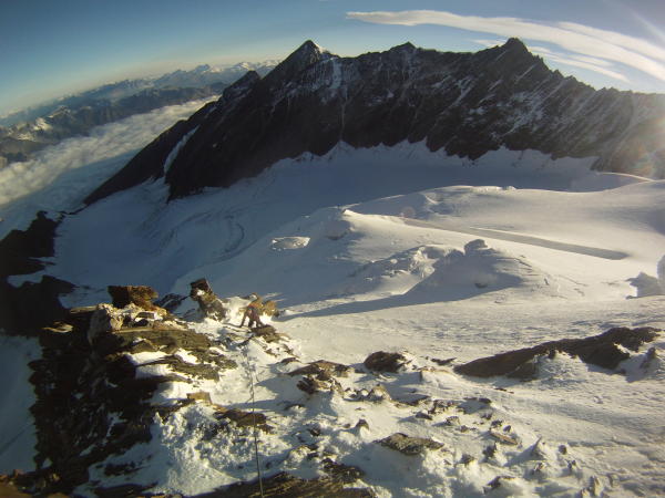Im Gipfelhang erlebte die erste 2er-Seilschaft einen Spaltensturz. Es hat sich eine grosse Querspalte geöffnet welche nun links umgangen wird. Wie lange dieser Durchgang noch hält ist ungewiss.