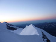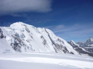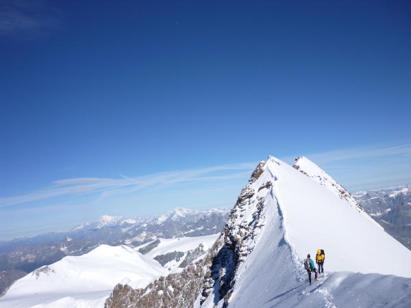 Grat war noch nicht eingespurt aber trotzdem sehr gut, noch kein Blankeis. Grenzgletscher noch gut begehbar, Moräne mühsam. Sehr viel Wind.