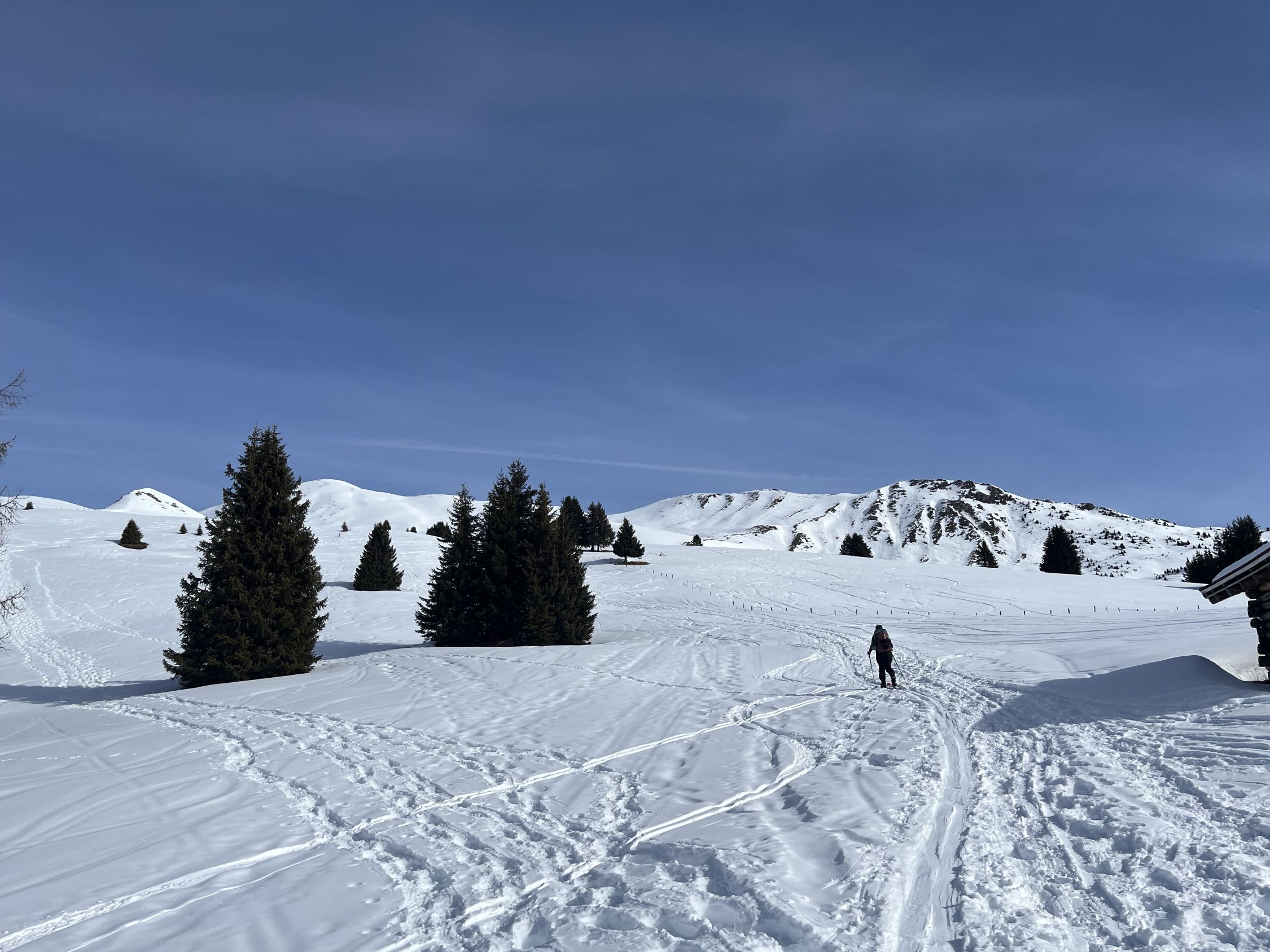 Bis Pirigen sind wir auf der Waldstraße gelaufen welche durchgängig Schnee hat, im weiteren Aufstieg gute Spuren vorhanden, Abfahrt zum Skihaus Casanna durchwachsen aber auch noch schönen Pulver gefunden. Waldstraße zurück ein paar Tragestellen. Wegen dem Gesamtpaket gabs ein gut