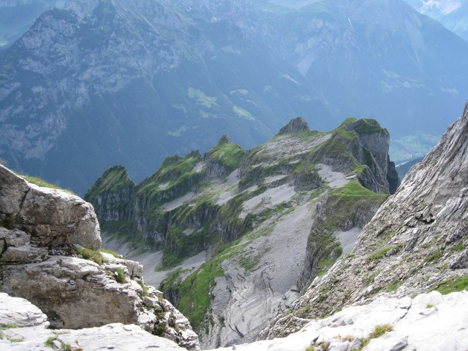 Vom Brüsti kurzer Abstieg nach Waldnacht. Über den Bocktritt zum grossen Kreuz beim Geissbergrätli hinauf. Der sehr "holprige" Bergweg war etwas schmierig vom gestrigen Regen. Weiter auf dem breiten Rücken des Hoch Geissberg zum Gipfel. Im letzten Aufschwung waren die felsigen Rinnen trocken und gut zu begehen. Herrlicher Tiefblick ins Erstfeldertal, Kröntengebiet, Oberland, Schächental, zum Brusti und Urnersee etc.etc. Abstieg über Vorder Chessel mehr oder weniger weglos zum Bocktritt hinab.(Skiroute) Kurzer Gegenanstieg von Waldnacht zum Übergang, dann auf der Via Alpina nach Attinghausen zurück.