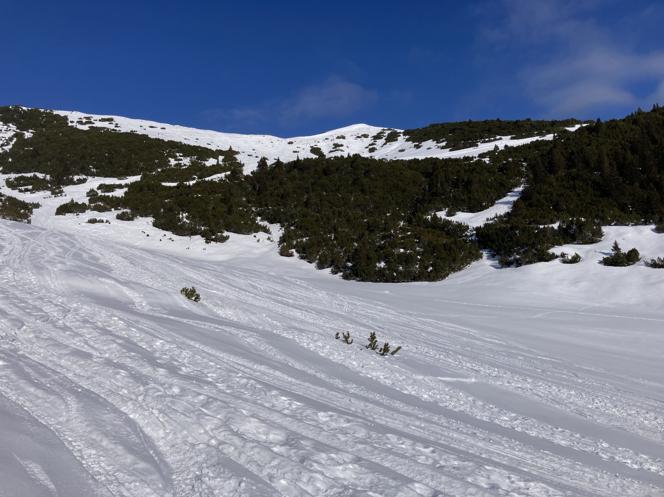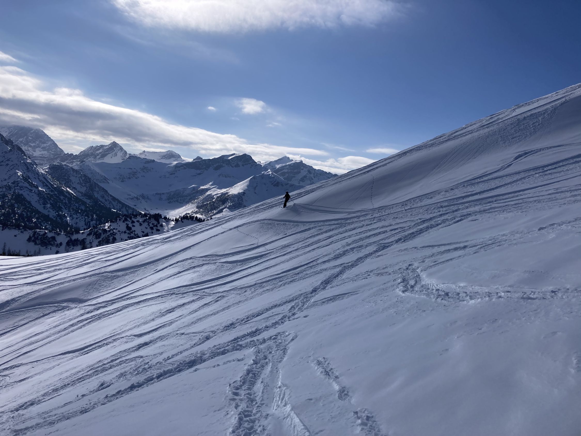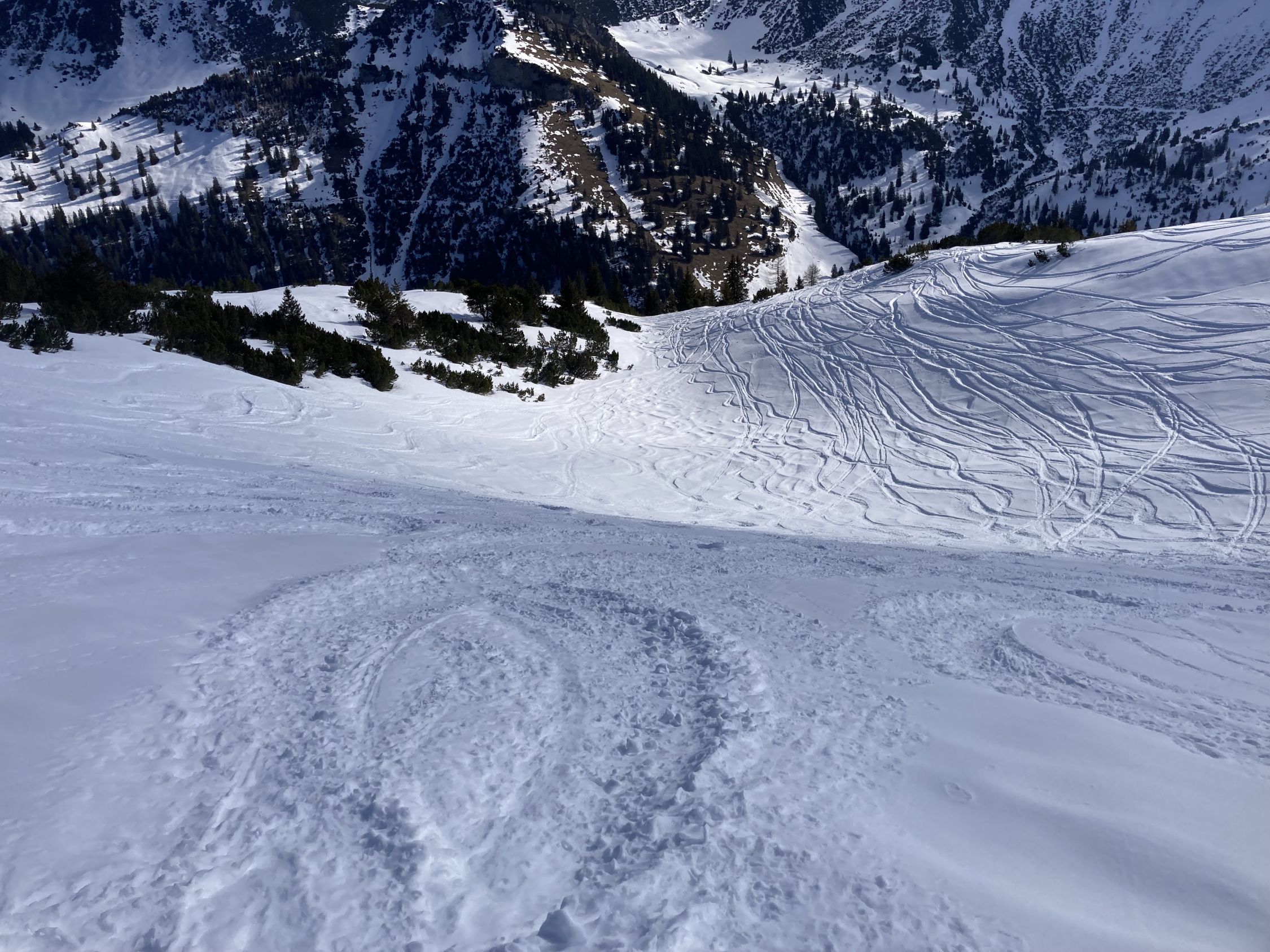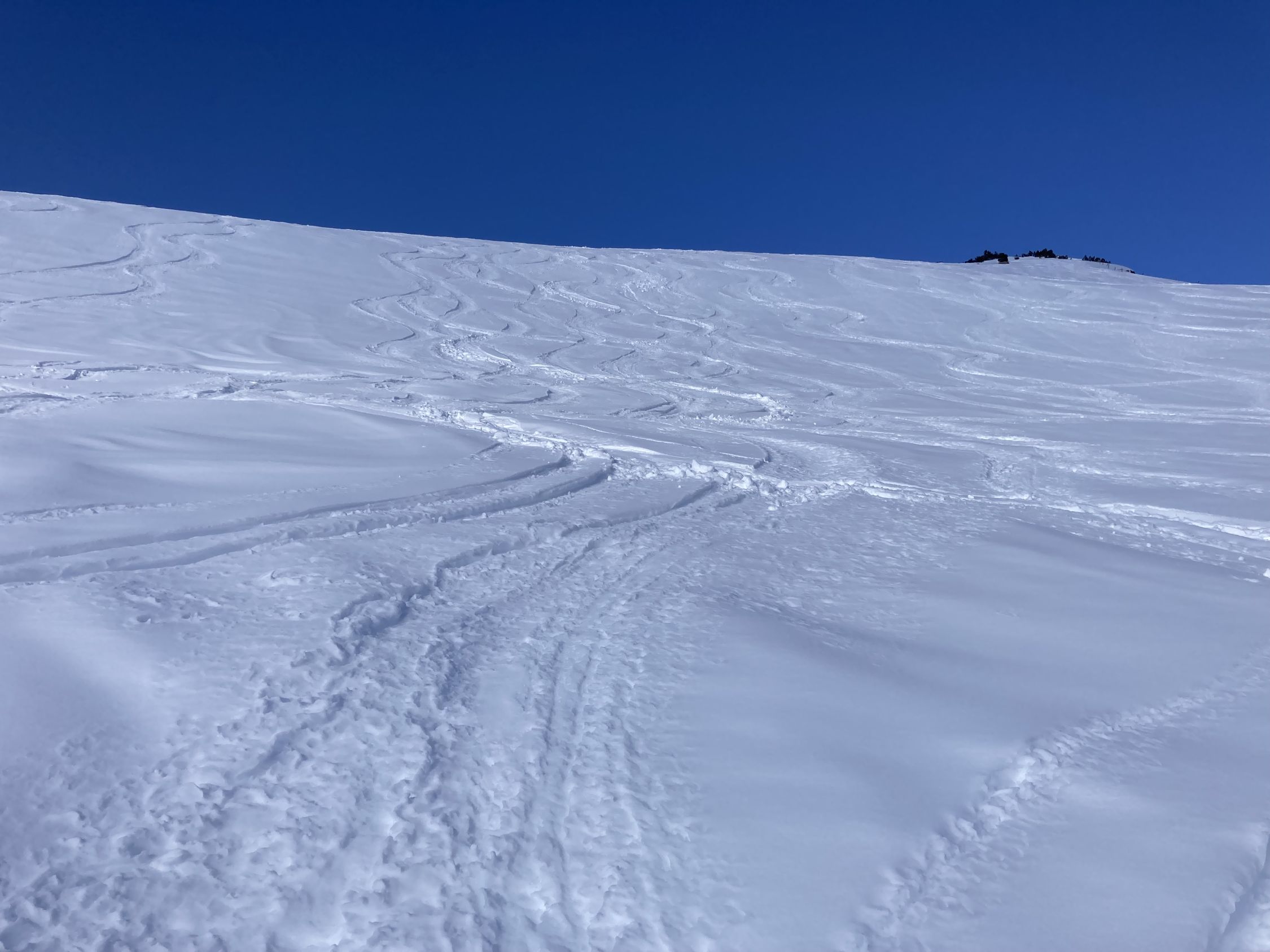Sind auf dem Rückweg von der kleinen Furka 1884 nochmals die Pulverschneehänge nach NE abgefahren, weil es so schön war. Waren auf der gesamten Tour alleine unterwegs.