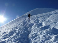 für festijoch lohnt sich das helmtragen, bei viel betrieb staut es sich da und es können schon einmal ein paar steine nach unten fliegen... um dem stau zu entgehen lohnt sich ein schneller start (in der hütte ist morgens eh ein ziemliches gedränge und gestresse..)