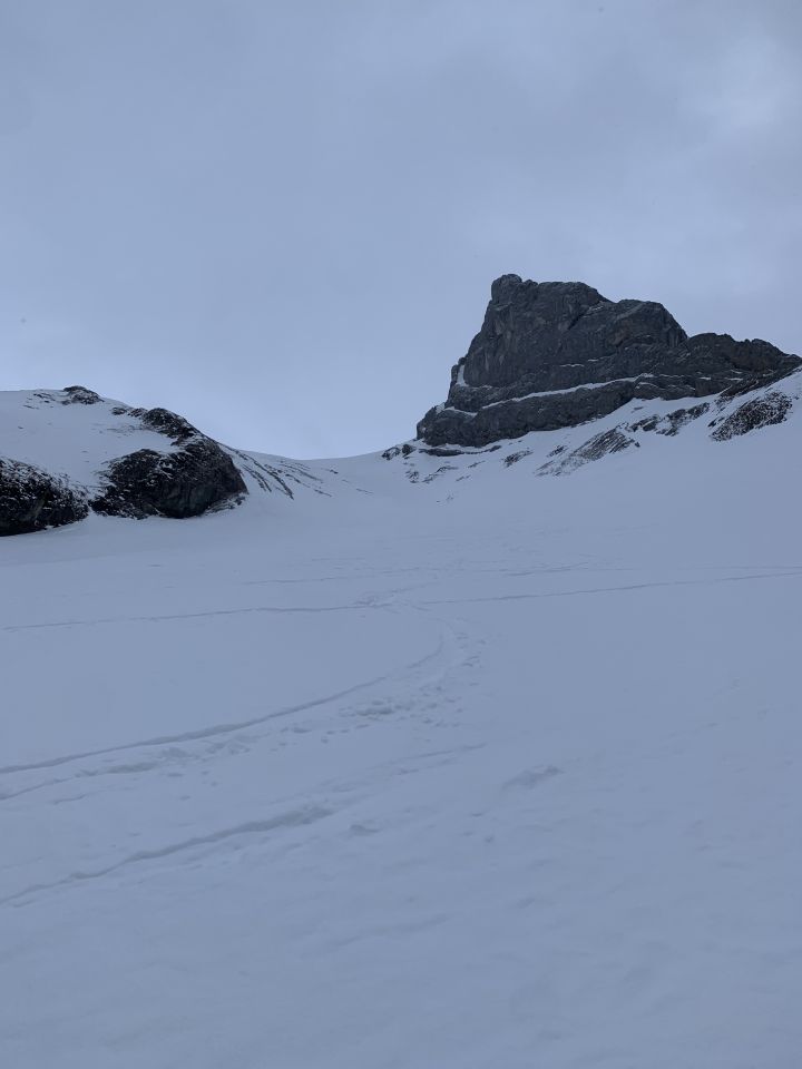 Skitour im Skigebiet? Ja, wenn man die Les Diablerets „ehrlich“ von unten machen möchte. Heute aufgrund des Wetterstörung am Vormittag eine gute Wahl. Orientierung dank Skipisten einfach, wetterbedingt kaum Betrieb im Skigebiet. So hatte die Tour einen gewissen Einsamkeitsfaktor! Ab Mittag dann Kaiserwetter und gechillte Abfahrt über Pisten bis zum Auto. Entsprechend ein ausgezeichnet!