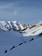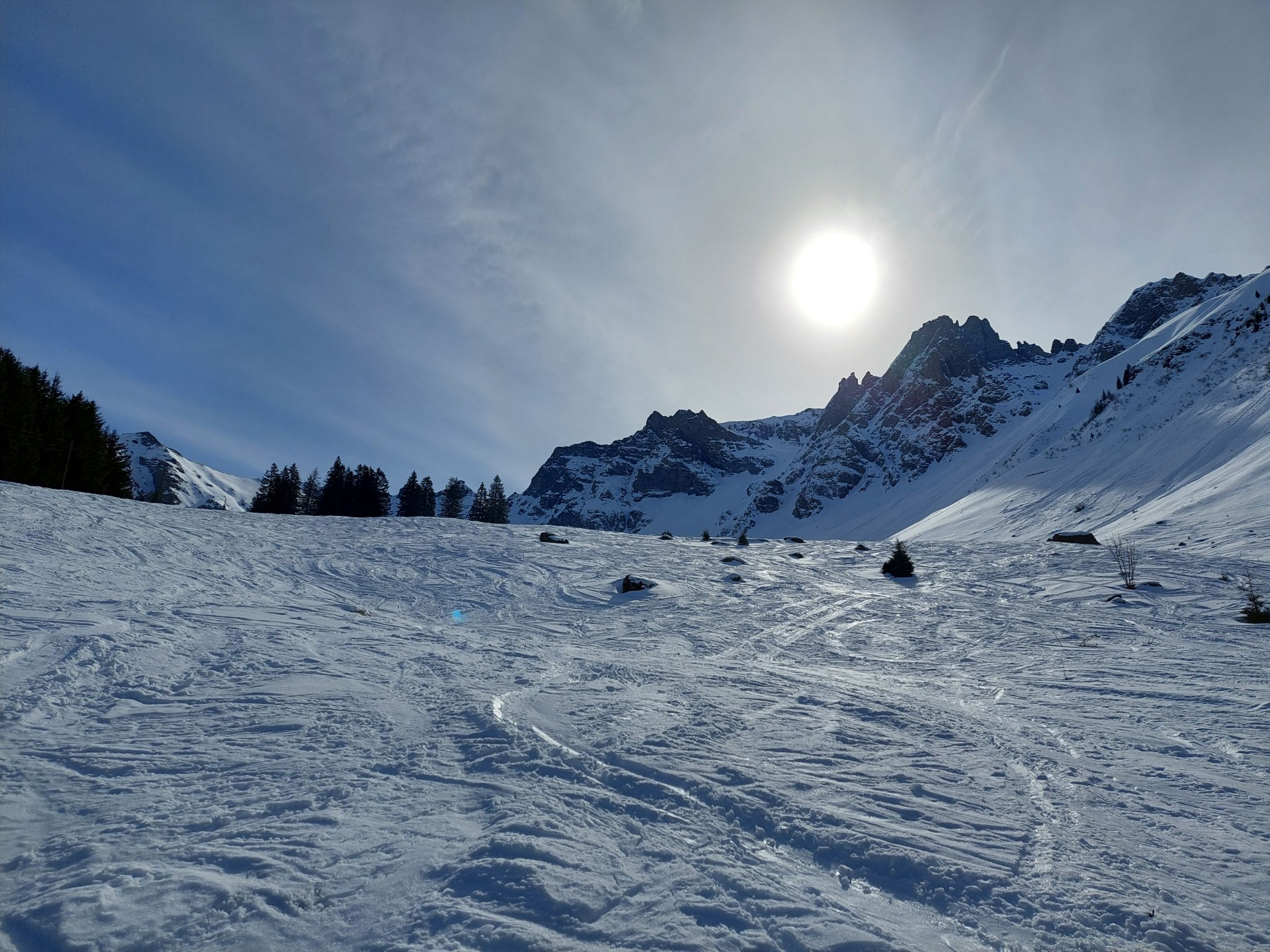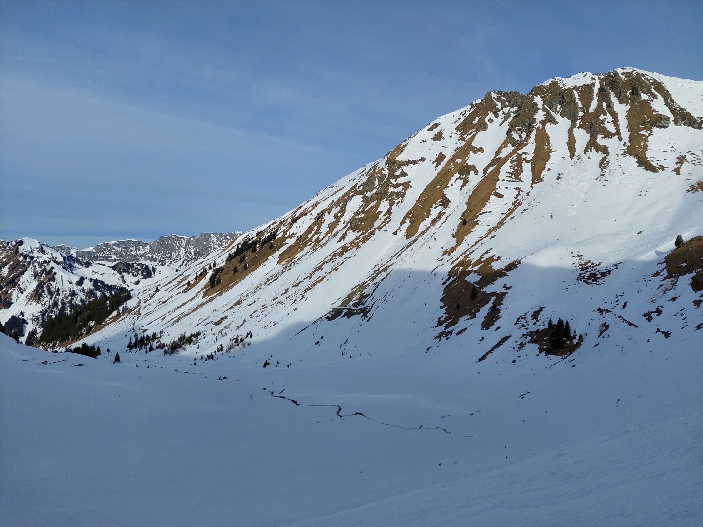 Eigentlich wollte ich auf das Türmlihore oder Landvogtehore und hoffte noch auf Pulver. Leider hatte es im oberen Steibode nur Bruchharsch. Ich nehme an, dass die Schattenhänge auch bruchharschtig sind. In den Südhängen habe ich super Sulz vorgefunden.