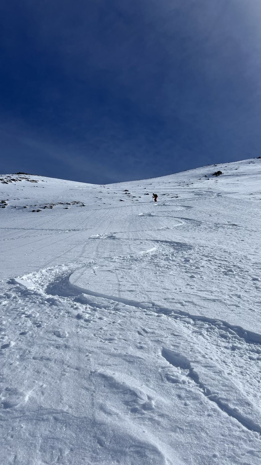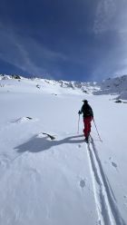 Im Val Nuna hat es noch viel Platz für eigene Spuren. Der Schnee ist natürlich nicht mehr ganz frisch, aber grösstenteils sehr gut bis genial zu fahren. Zum Teil hat es aber wenig Unterlage, ich hatte ein paar mal Feindkontakt.