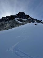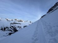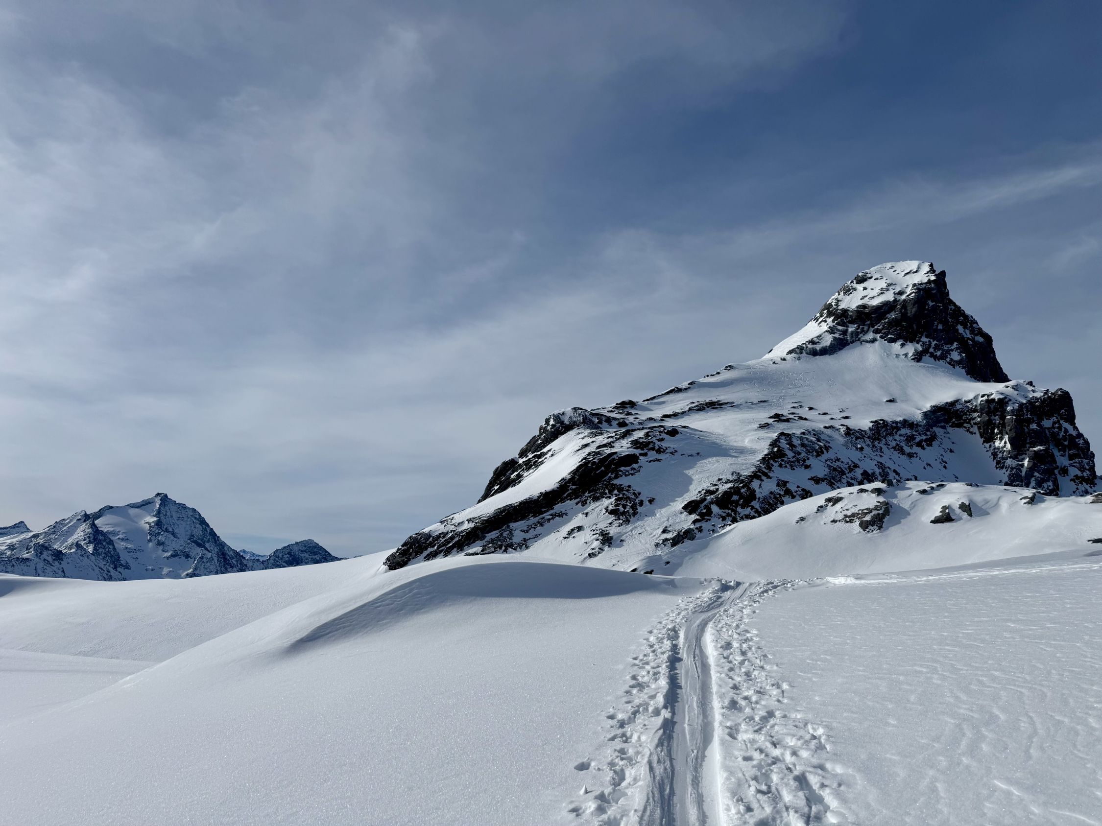 Start um 06:00 in Bielen bei der Barriere mit den Skis. Sehr gut angelegte Spur ab Laueli bis zum Skidepot (vielen Dank der/dem Spurer*in!). Harscheisen waren im gesamten Aufstieg nicht nötig. Wir haben für den Fussaufstieg zum Gipfel die Variante mit nach rechts ausholen genommen (Pickel und Steigeisen). Die Abfahrt war erstaunlich gut.