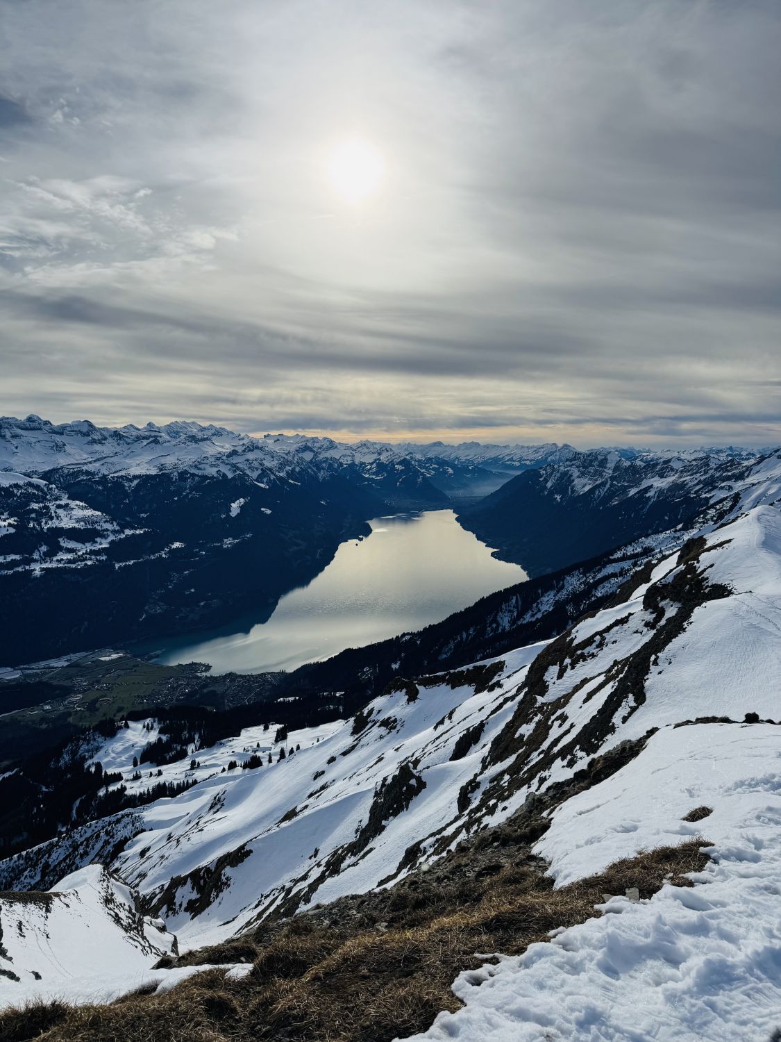 Nachmittags-Tour ohne grosse Erwartungen. In Lungern noch weit und breit kein Schnee, in Turren dann schon noch ziemlich weiss, ausser die steilen Südhänge sind braun. Aufstieg ging sehr gut, breite Spur, nicht eisig, genug Schnee. Auf dem Gipfel dann viel Wind, ganz alleine. Und eine wahnsinns Aussicht. Abfahrt anstrengend, meistens total verfahrener harter Schnee oder Bruchharsch, kurze schöne sulzige Zwischenstücke je nach Hanglage. Im unteren Teil entschieden wir uns dann für die schön präparierte Strasse (Winterwanderweg).