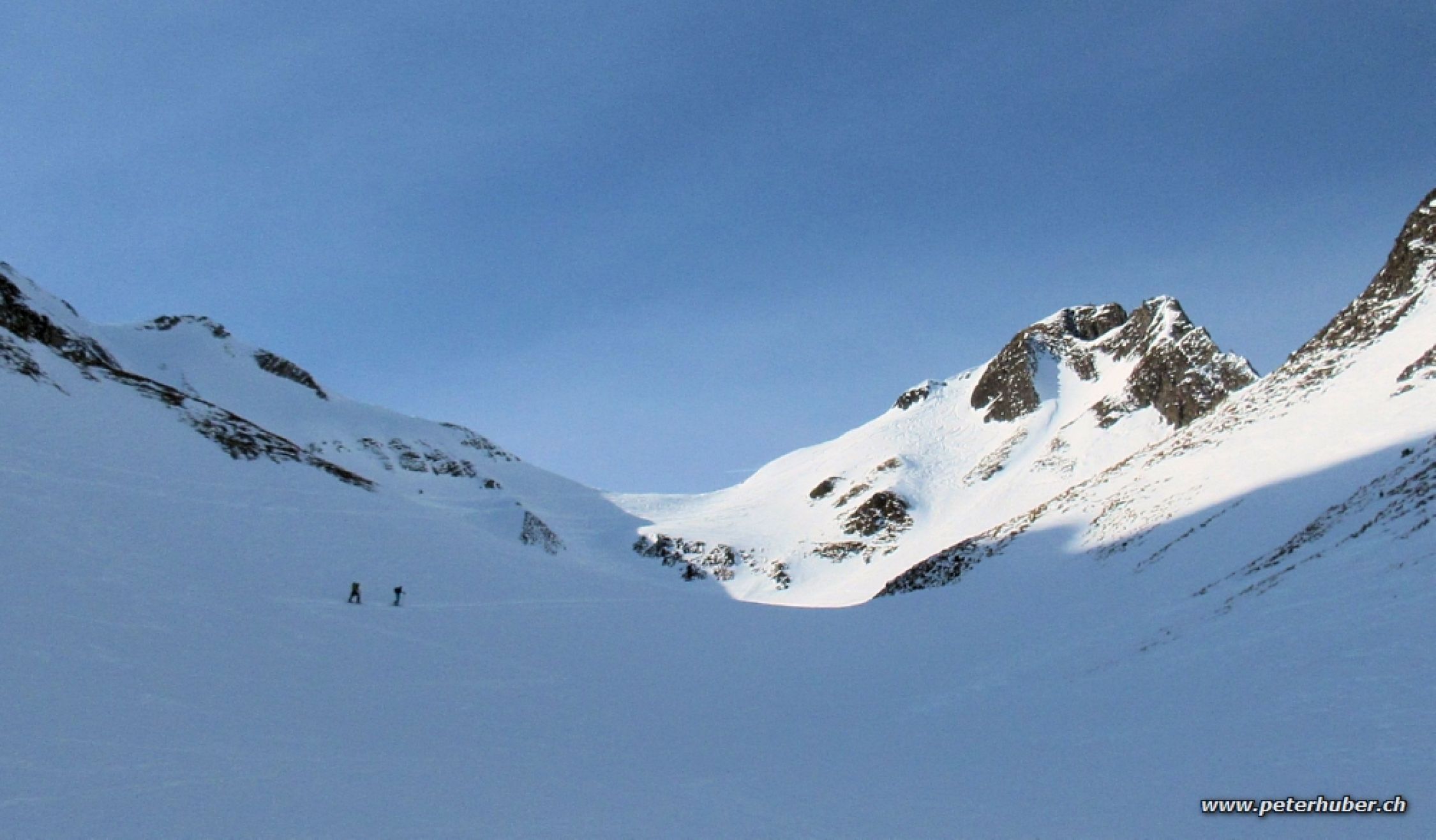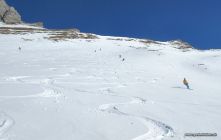 Schöner Tag mit gutem Aufstieg, schöne Bergwelt, Abfahrt nur teilweise ein Genuss. Daher machbar.