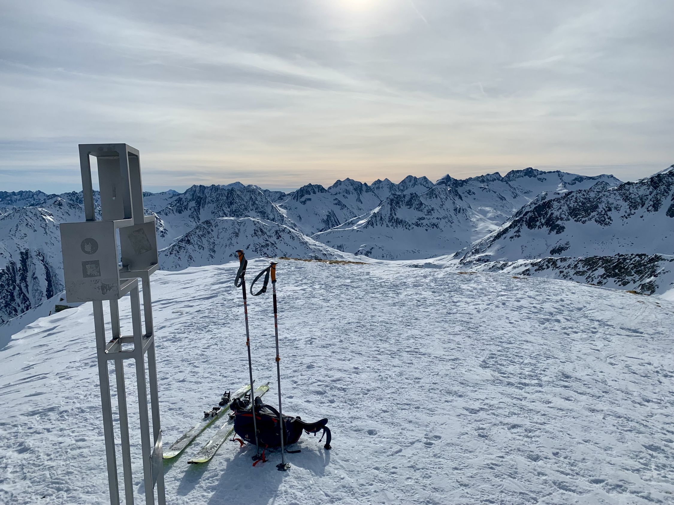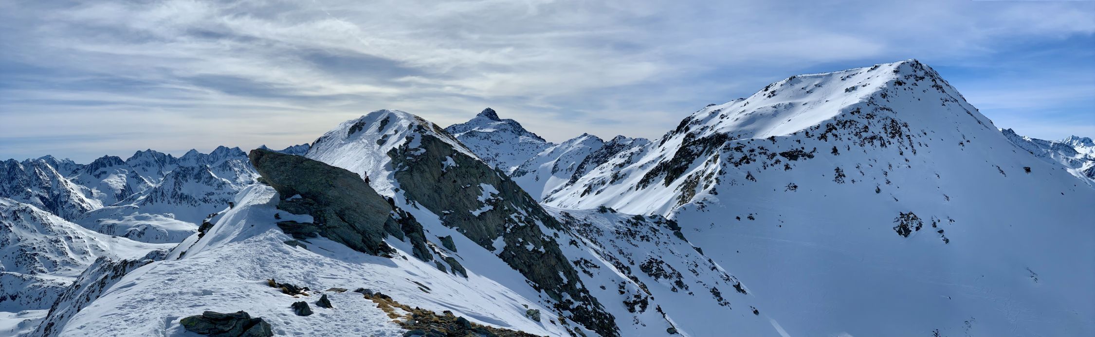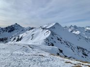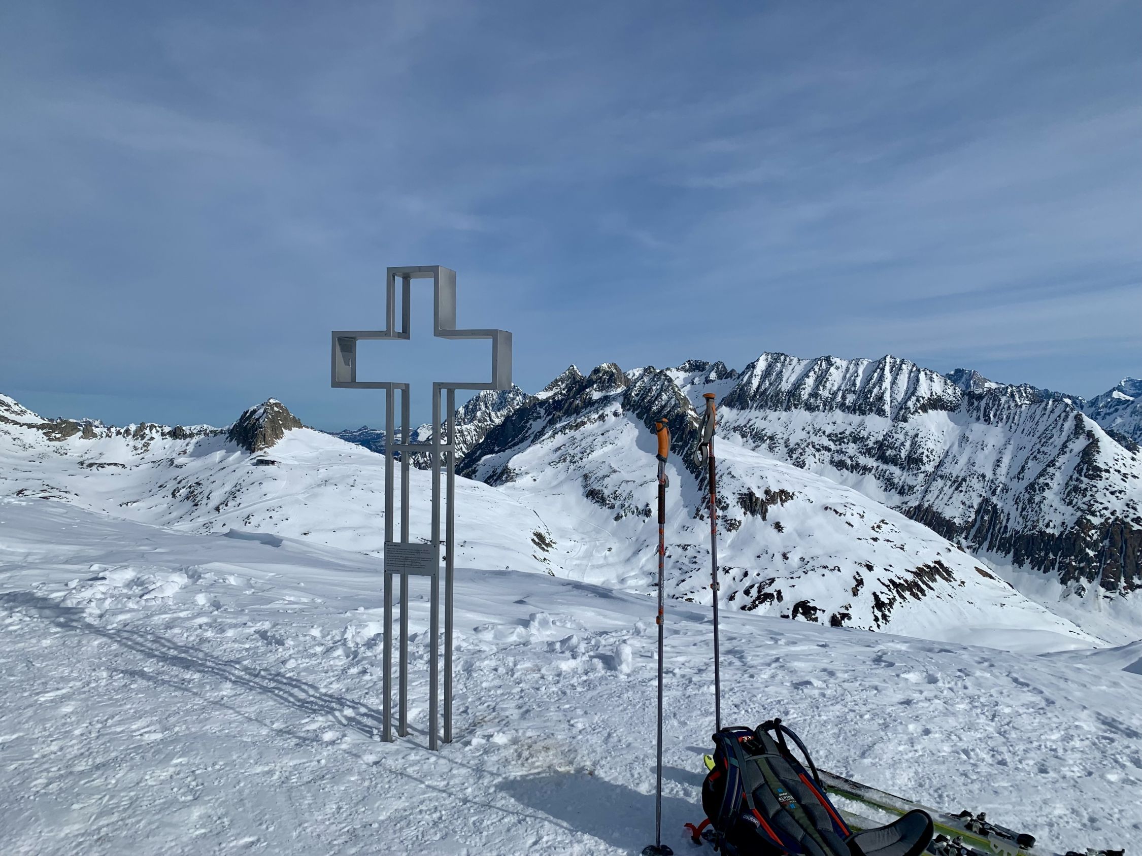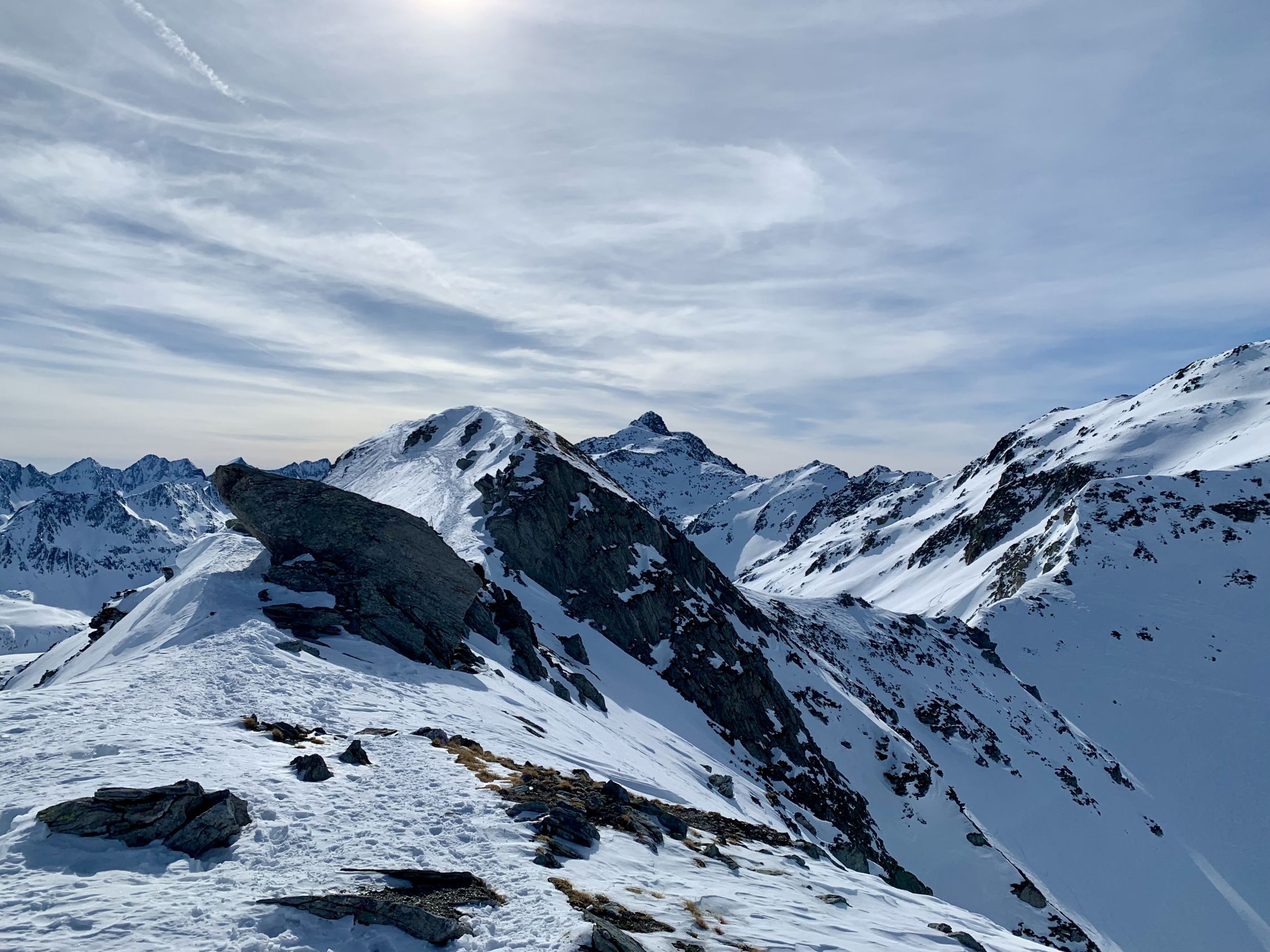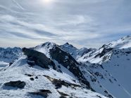 Ein wunderschöner Tag - die Schleierwolken am Morgen lösten sich rasch auf, der Wind nur am Gipfel lebhaft. Nur hat es einfach zu wenig Schnee …