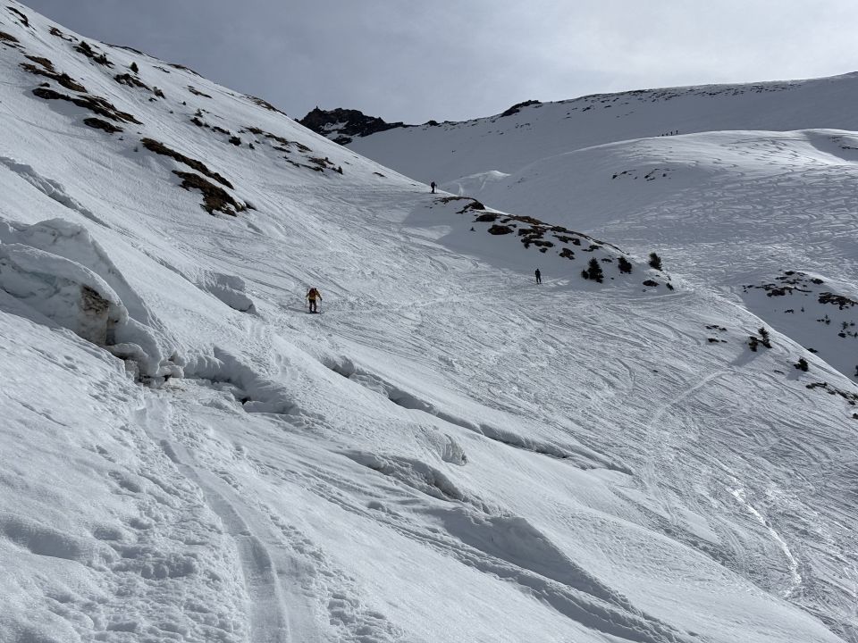 Die Bewertung "gut" basiert auf dem Fakt, dass die Schneedecke durchgehend ist und das Wetter relativ gut war. Die Schneequalität liess leider sehr zu wünschen übrig: Hartschnee im Aufstieg, der zu Bruchharst oder Nassschnee wurde, je länger der Tag dauerte... Leider kein Abfahrtsvergnügen.