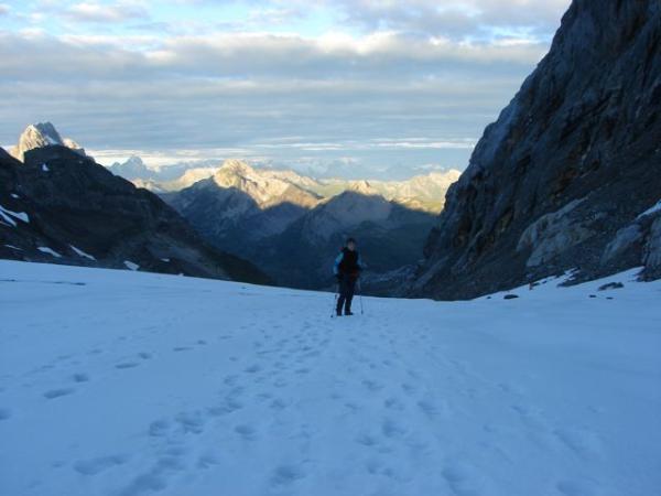 Wir konnten über den Glärnischfirn ohne Seilsicherung und Steigeisen gehen. Bei der Abkletterstelle (Ketten) zu Beginn des Schwander Grats ist Seilsicherung empfehlenswert. Auf dem Schwander Grat hatte es wenig Neuschnee.
