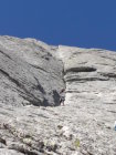Wie hat Andrea von der italienischen Seilschaft den Zustand in den ersten SL treffend beschrieben: "IKEA, das ist wie IKEA am Samstagnachmittag!" Hinter uns kamen ca 15 andere Teams in die Wand. Spätestens ab dem großen Band hatte es sich aber halbwegs entzerrt. Danach reihten sich die Seilschaften wie einen Perlenschnur aneinander.