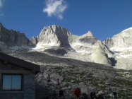 Sasc Furä in Ordnung, Gianetti-Hütte sehr chaotisch, eher unfreundlich, und wenig zu essen, das man nicht bekommt, wenn man nicht ständig hinterherrennt. Dafür wird anstandslos toleriert, dass man sich mit matratze u Decken unter den Sternenhimmel legt. Die ganze Nacht über trudelten noch Seilschaften vom Badile ein. Als mich um ein Uhr nachts eine weckte, waren immer noch Stirnlampen von abkletternden Teams zu sehen.