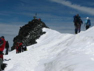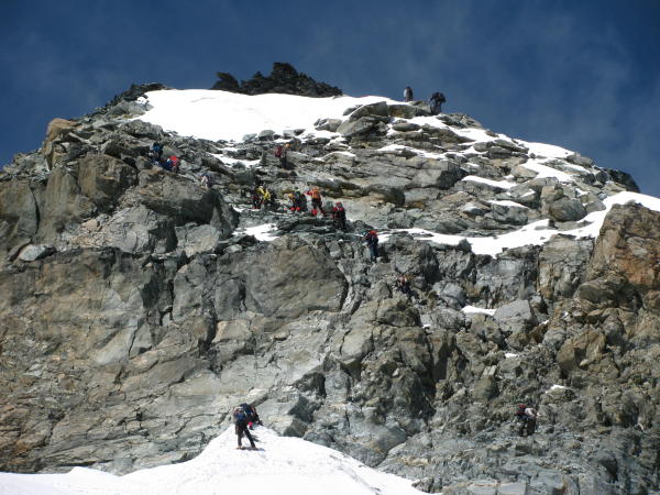 Bravo an Thomas für deinen ersten 4000er und deine erste Tour auf Gletscher! Rega-Einsatz an der Normalroute nach Abrutscher einer 3er-Seilschaft in eine Spalte auf 3650m(1 Person mit Rückenverletzung)