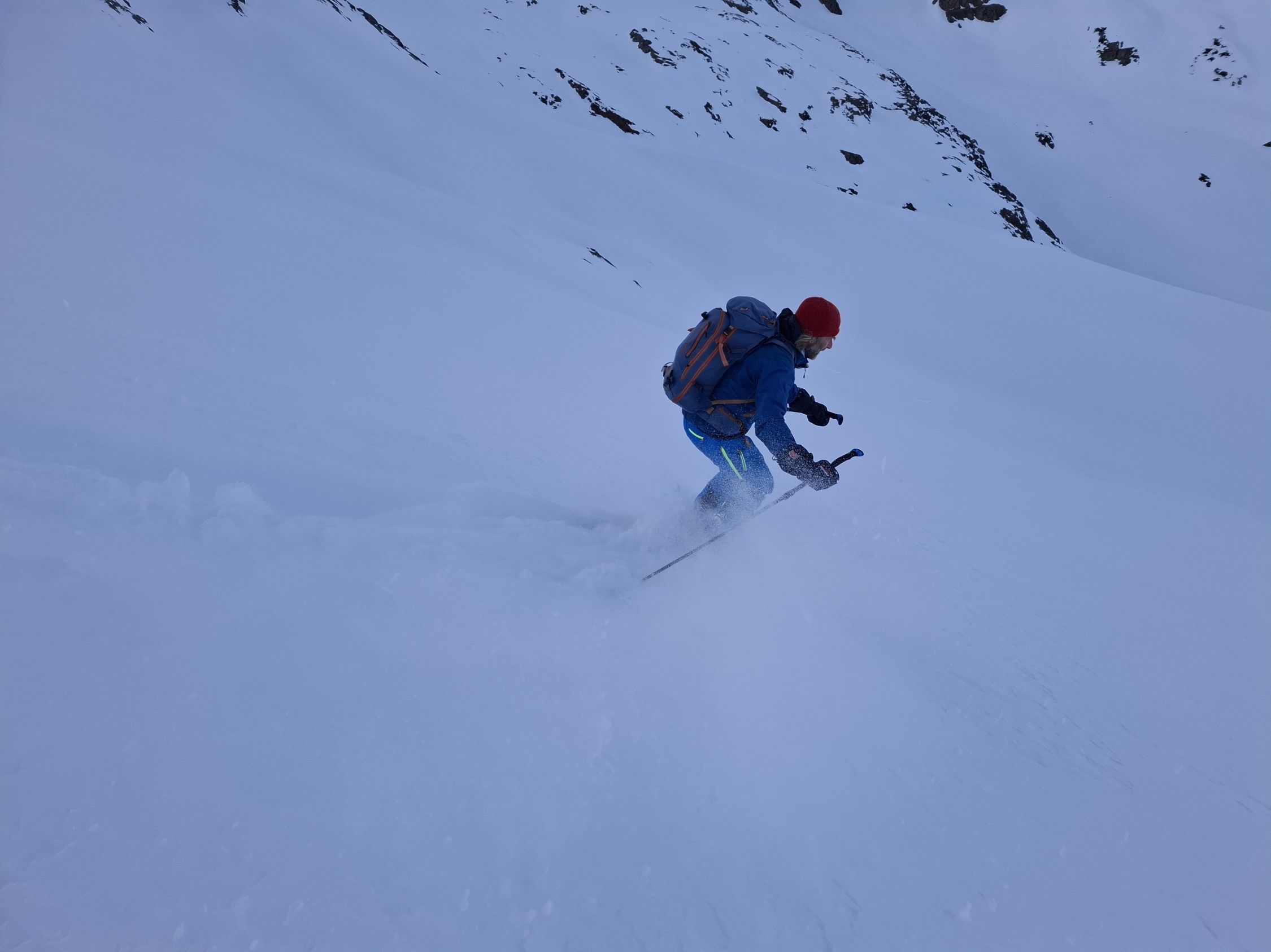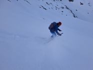Bis zu 45° steil. In schönstem Pulver Abfahrt am gleichen Weg und alles retour bis zum Auto. Wunderschöne lange Tour.