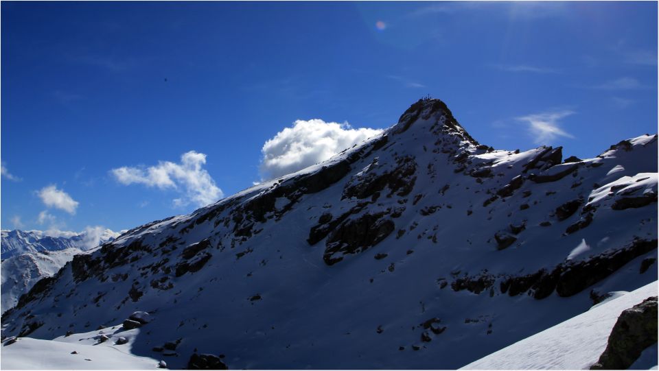 Ähnliche Verhältnisse herrschen bis zur östlichen Gipfelschulter. Der Gipfelanstieg von Osten ist pulvrig.
