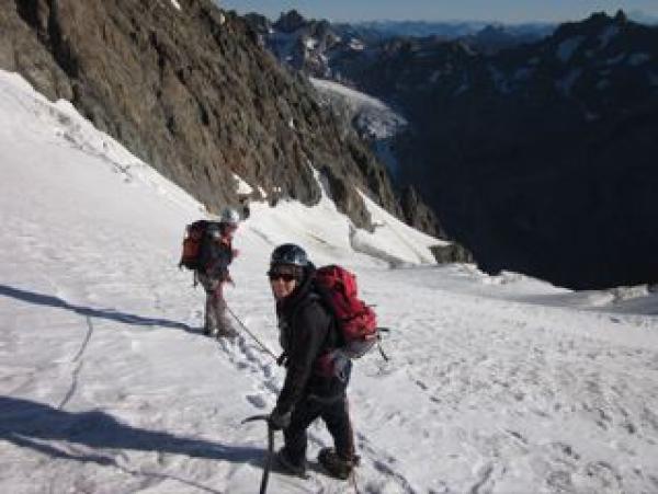 Ausgezeichnete Verhältnisse auf der ganzen Route. Firn und ca. 20m Eis im Couloir Coolidge. Abstieg über Violettes gut machbar. Braucht aber gutes Gespür für die richtige Route. Es lohnt sich, sehr früh am Gipfel zu sein, da der Abstieg sehr früh Sonne hat und die Querung zum Felssporn dem Stein- und Eisschlag ausgesetzt ist. Falls man die richtigen Abseilstellen findet, reicht beim jetzigen Glescherstand ein 50m Seil. Falls man zwingend abseilen muss, hat es immer einen Bohrhakenstand.