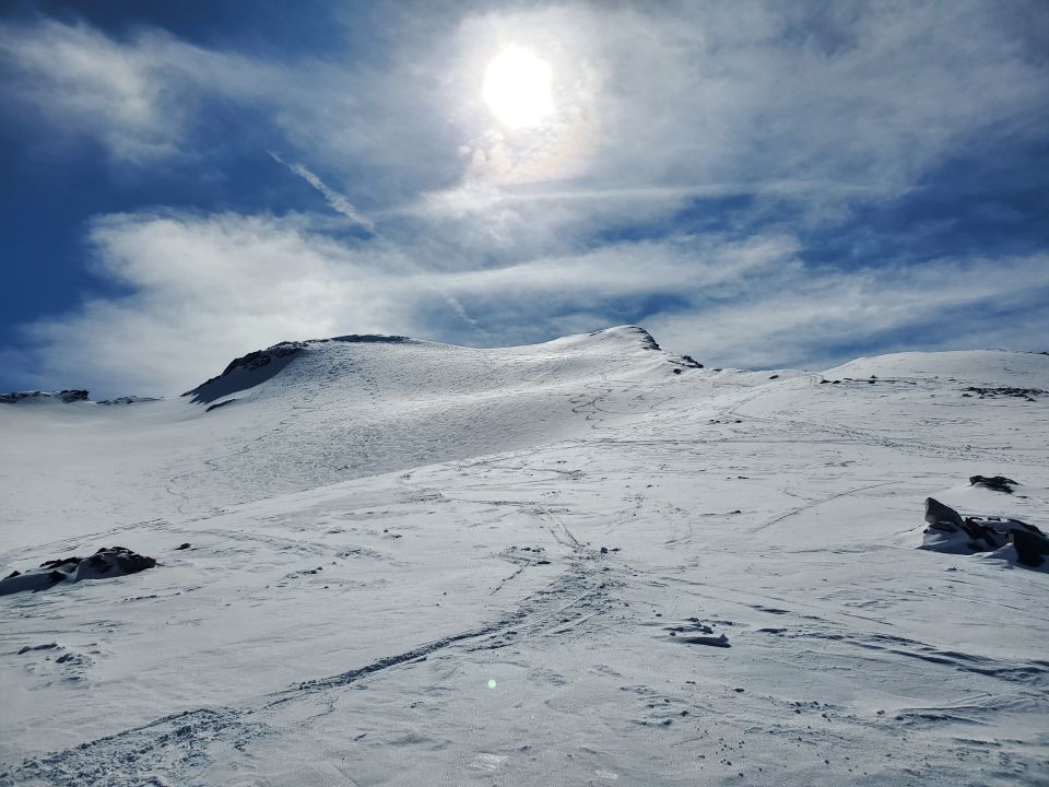 der Tunnel ist bis auf 5m zum Schluss eisfrei, danach noch kurz tragen, dann kanns mit Ski losgehen; durchwegs Schnee auf der Straße, d.h. Abfahrt bis kurz vor dem Tunnel problemlos möglich; insgesamt trotzdem wie überall zu wenig Schnee, aber die Aufstiegsroute und auch eine gut ausgesuchte Abfahrt gut möglich; Spur in einem guten Zustand, keine Harscheisen heute benötigt; in der Abfahrt am oberen Hocheiserkees noch Pulver aber mit windgepressten Deckel; in der weiteren Abfahrt wegen Schneemangel immer auf Steine achten! zum unteren Hocheiserkees rübergequert, dort noch guten Pulver und Platz für eigene Spuren;