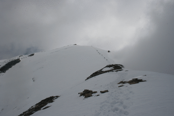 Sehr gute Hochtourenverhältnisse.Schöner Trittfirn, Route kann ohne Steigeisen gemacht werden.