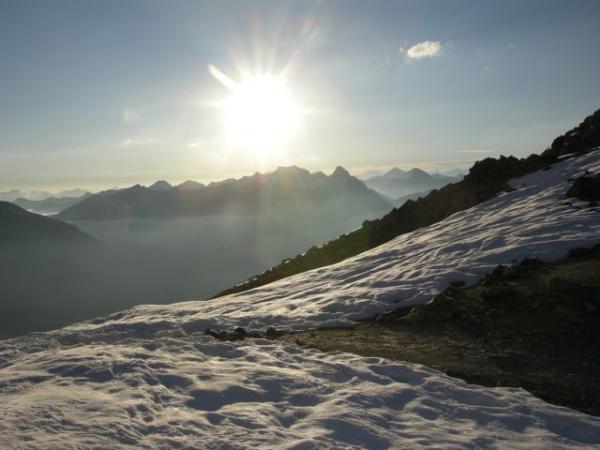 Sind von der Talstation Diavolezza um 4.00 losgelaufen. Die Tour umfasste somit 2000 Höhenmeter. Vielleicht hat der Eine oder der Andere gemeint wir seien spät dran: aber alles hat seine Erklärung...