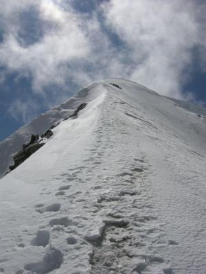 Sehr gut: Fels auf dem Grat war trocken, die wenigen Schneeresten im oberen Teil störten nicht. Alles ohne Steigeisen geklettert.