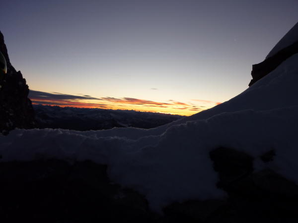 Auf dem Gletscher zur Fuorcla Prievlusa liegt ca. 30 cm Neuschnee. Dieser hat sich aber gut verfestigt und daher kann über den Gletscher bis zur Fuorcla hochgestiegen werden. Auch auf dem Biancograt gut verfestigter, harter Neuchnee.