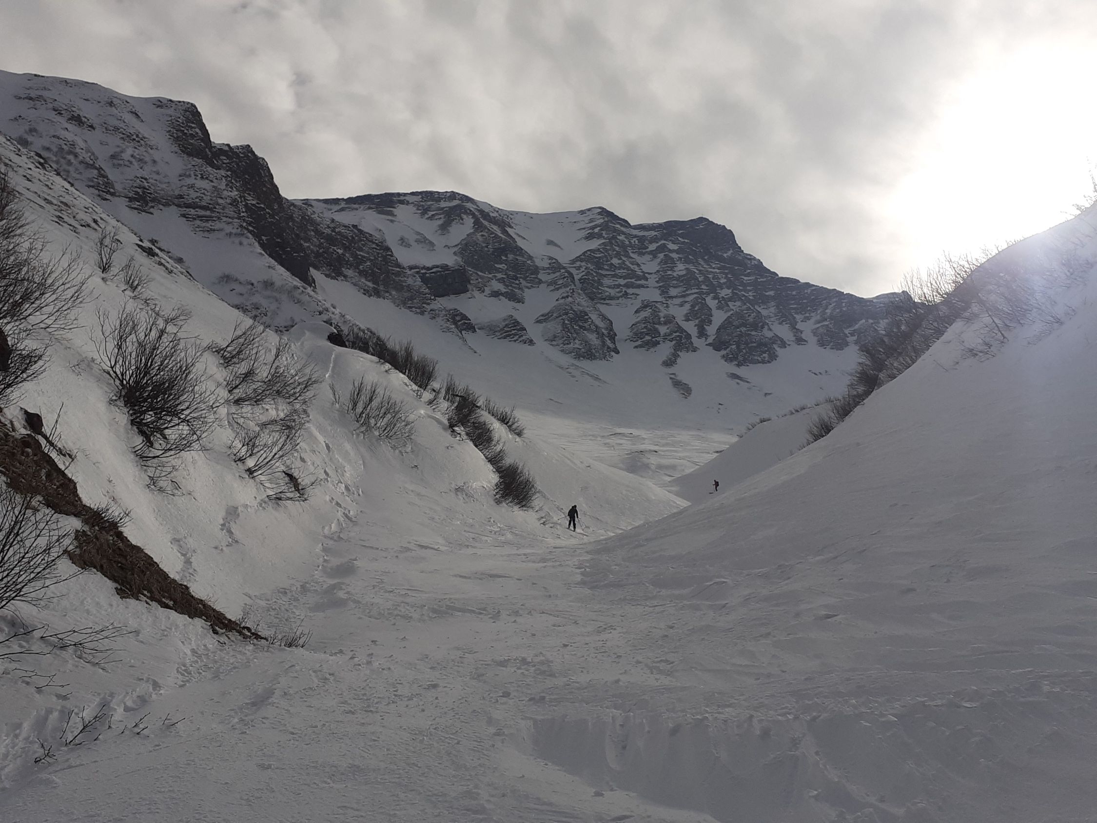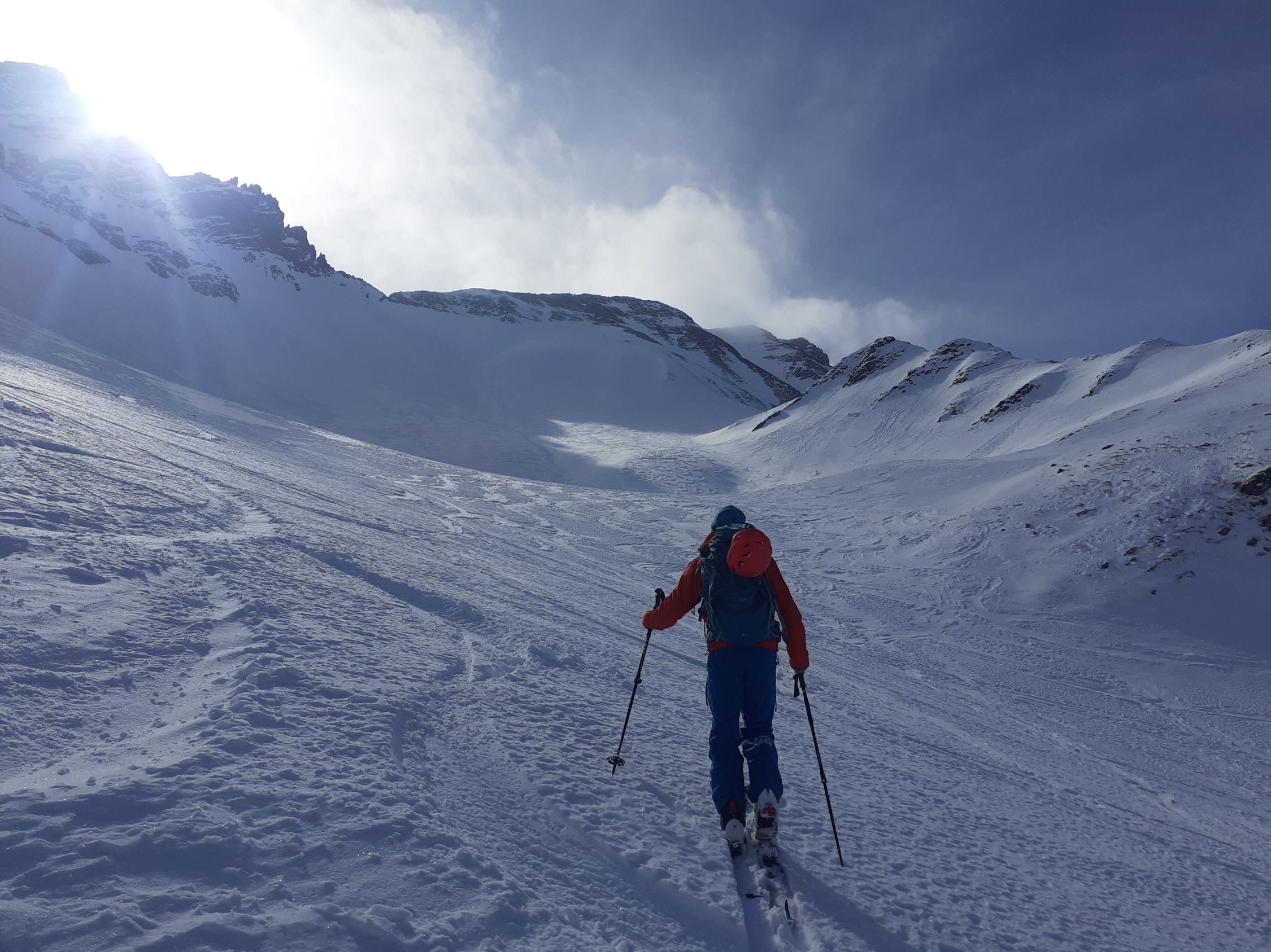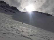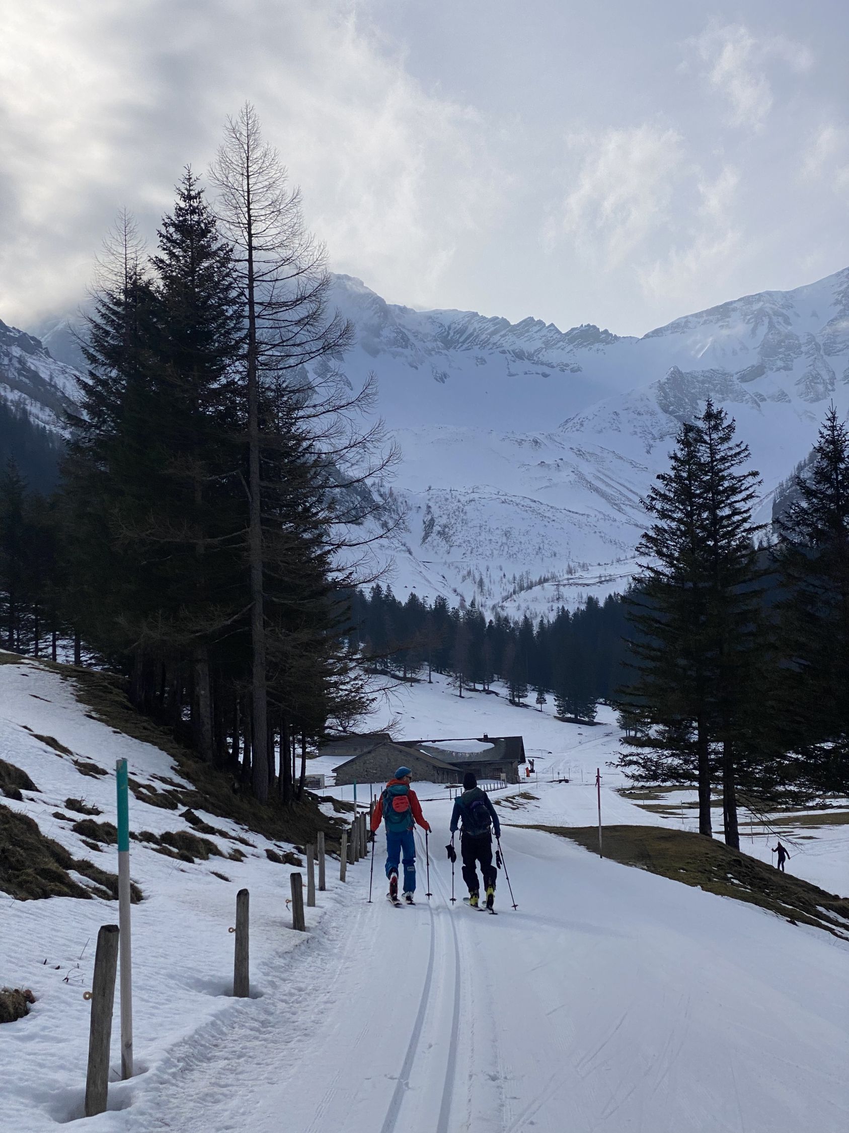 Noch geht es von Steg über die Loipen weg, die aber bereits recht dünn und am Nachmittag feucht sind. Im Nordkar zur Ijeesfürggli noch Noppenpulver, der nicht mehr ganz locker war, aber noch gut zu fahren. Sonst teils Bruch oder windgepresst. Steinkontakte eher unwahrscheinlich. Eine Gruppe ist ohne Steigeisen auf den Gipfel, wir haben aus zeitlichen Gründen auf Höhe der Scharte umgedreht. Ausführliche Tourenbedingungen von zwei Tourentagen um Malbun: https://www.alpenvereinaktiv.com/s/3wPxXX