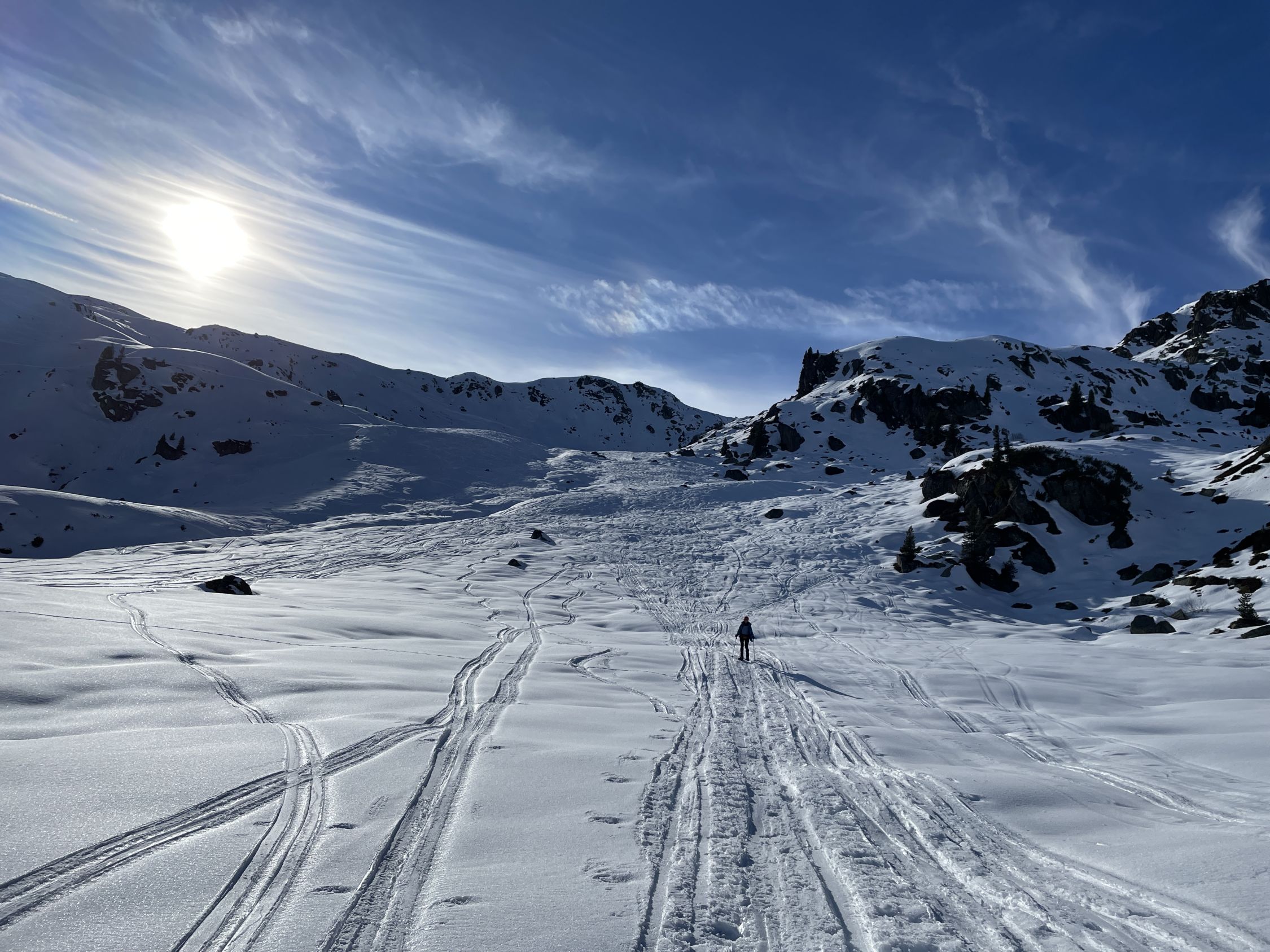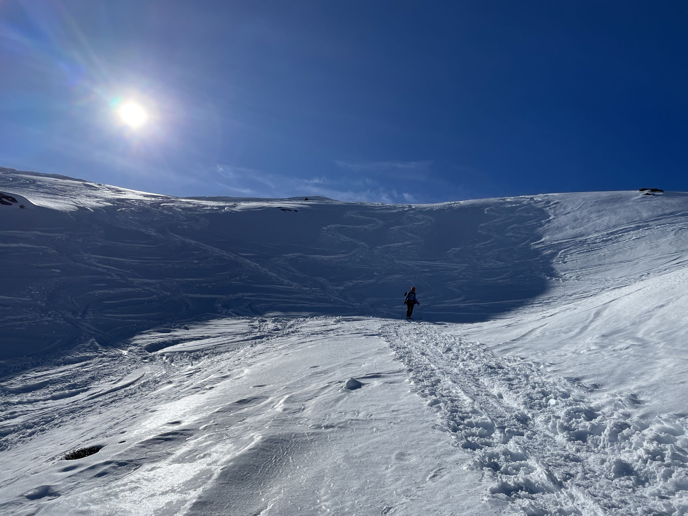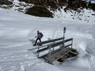 Im Aufstieg überholte uns bei dem Salzach-Brückerl ein Skitouren-Pärchen. Weiter oben kamen uns 3 Skifahrer entgegen. Das Ziel der meisten Skitourengänger war heute der Tristkopf und der Schafsiedel.