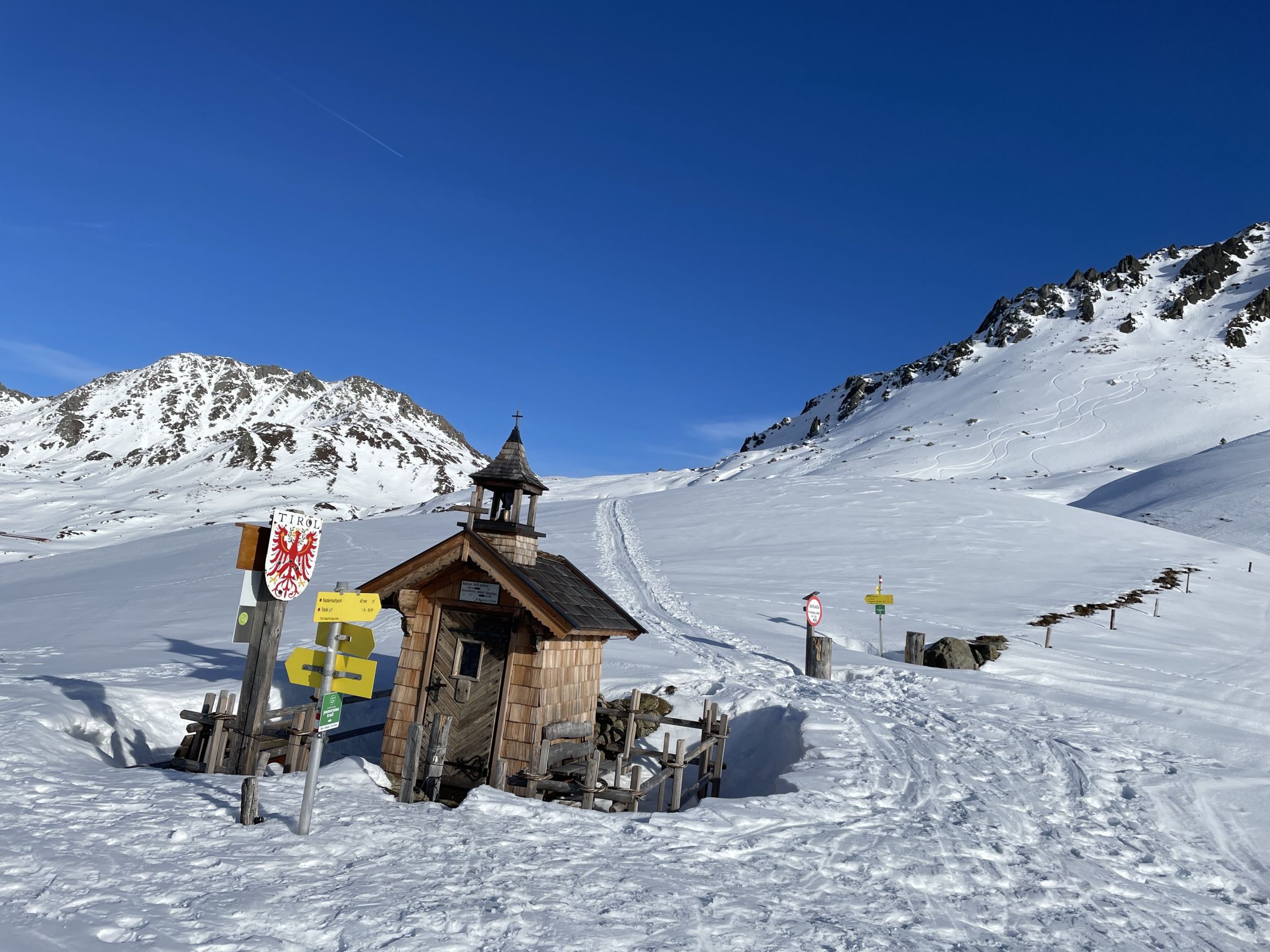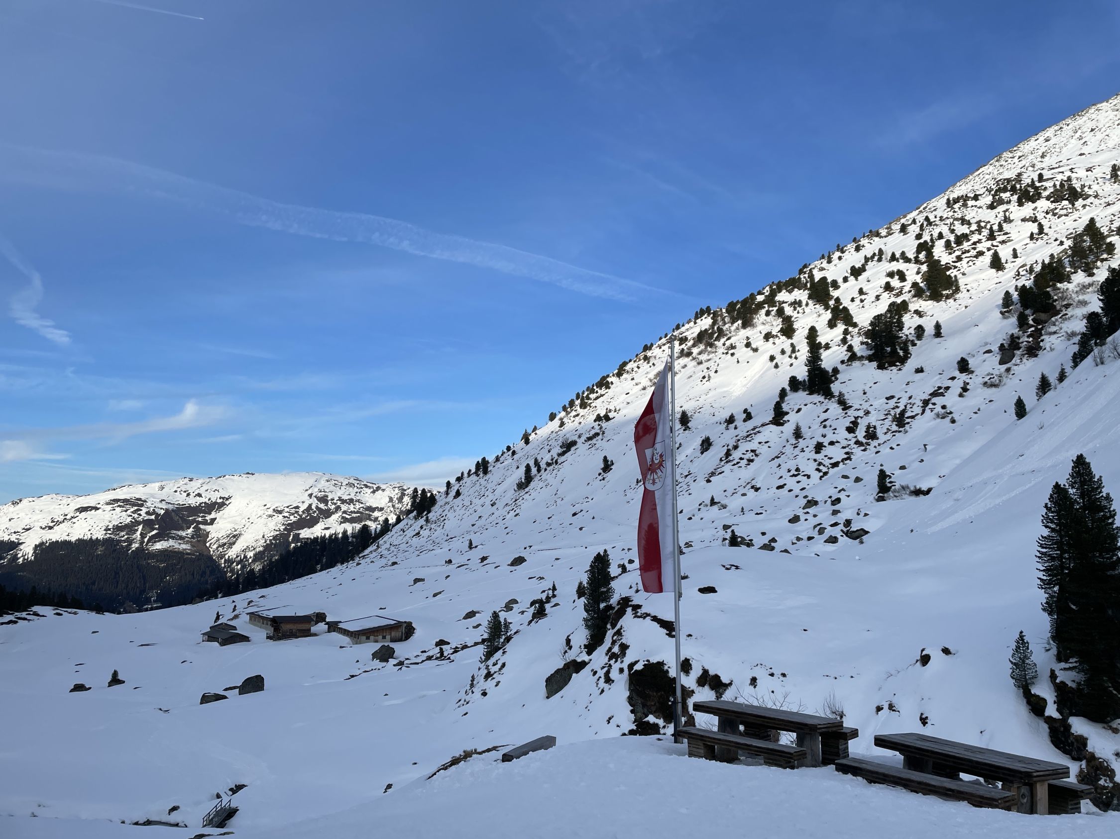 Die Neue Bamberger Hütte war ausgebucht. Sie hat noch geöffnet bis nach Ostern. Maut kostet am Ticket-Automat (nimmt Münzgeld) € 5,00 (Stand: 2025).