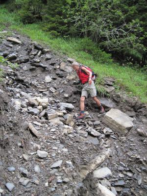 Unten feuchte Wege, ab der Hütte Sulzgraben 1560 m dank der reichlichen Vegetation z.T. glitschige Passagen, das Gras etc. allerdings trocken, es gab keine nassen Beine. Wind und Nebel am Möntschelespitz. Bei der südseitigen Umgehung des Widderfeldes ist der eigentliche Wanderweg eine Schlammschlacht, zu viele Grossvieheinheiten waren dort nicht nur am Durchlaufen.... Hat man den Zaun Richtung Chatz u Mus überschritten, sind die Wege wieder angenehm zu gehen (offenbar kein Weidegelände). Felsen an Chatz u Mus trocken. Restabstieg problemlos mit sonnigen Abschnitten.