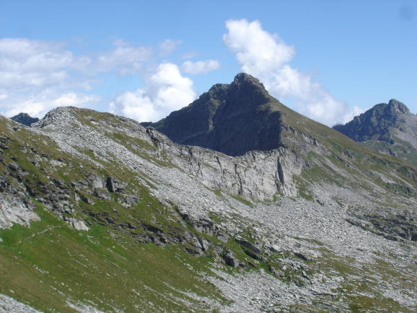 Weiter über den Südhang hinunter bis auf 2300m, wo man steil ca. 60 hm den Osthang hinuntersteigt. Nun in einer langen Querung leicht abwärts unter dem Ostgrat des Vogorno bis zum Wegweiser auf ca. 2140m. Von da zum Btta di Rognio auf 2219m. Weiter in südlicher Querung zuerst leicht abwärts auf den Südrücken des Madone P. 2222m. Nun über den Südhang hinauf zum Gipfel.