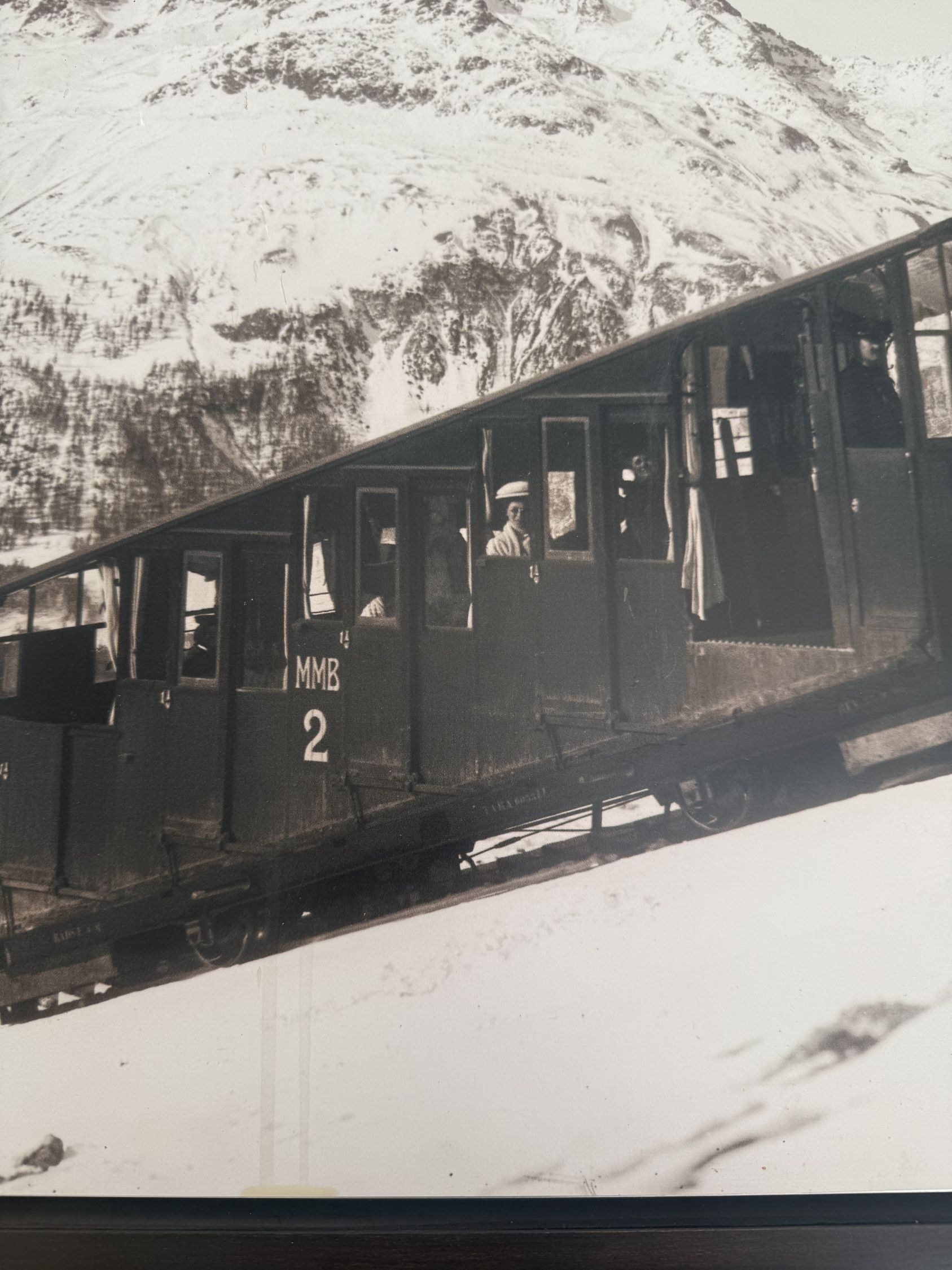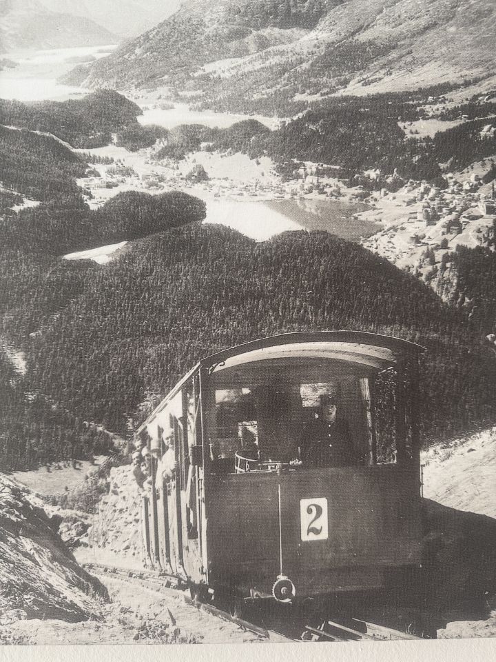 Vor mehr als 100 Jahren ratterte die Muottas-Muragl-Bahn das erste Mal in die waghalsige Schräge. 2201 Meter Länge und an die 56 Prozent Neigung galt es bis auf die 2456 Meter des Berges zu überstehen.