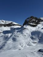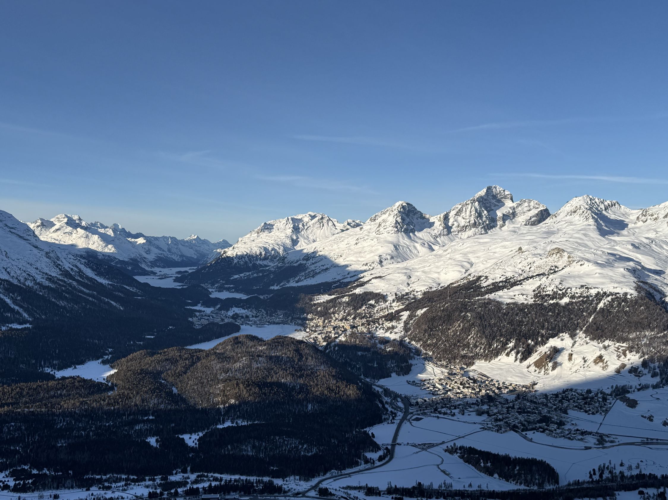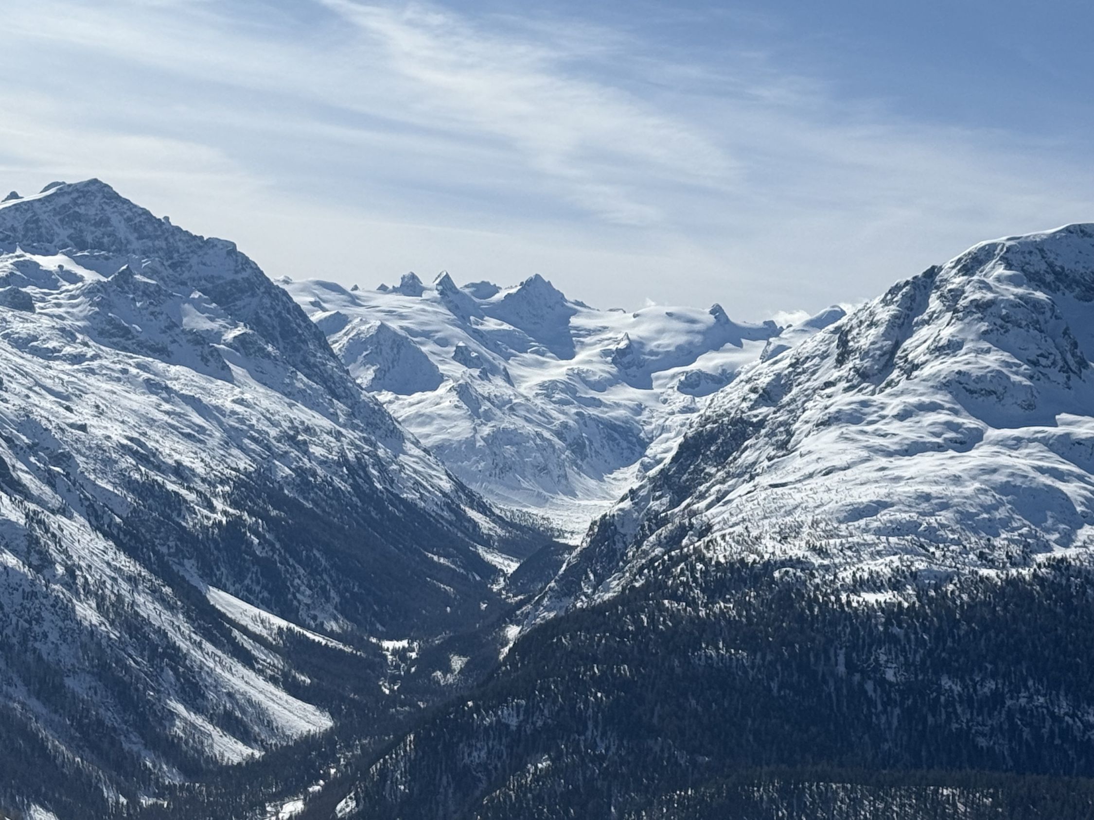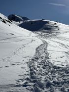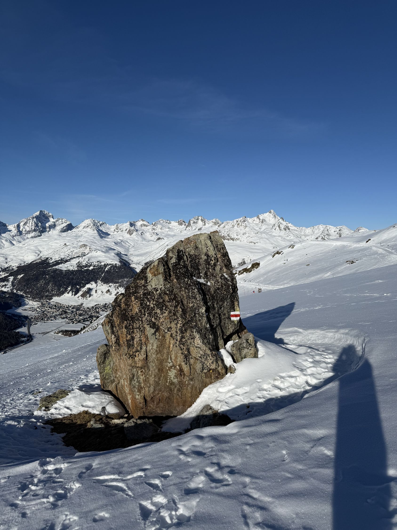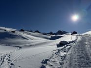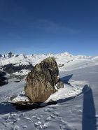 Wanderung mit Bergschuhe auf den Aussichtspunkt oberhalb Val Champagna, T4. Start 8.00 Muottas Muragl, erste Bahn 7.40, CHF 42.50 retour. Minus 10 Grad, windstill, ab 8.30 Uhr Sonne. Bis Nähe Fuorcla del Mort schöne gewalzte Piste, dann gute tragende Spur bis zum Gipfelaufschwung. Hier bin ich hie und da auf der Skispur eingesunken, leicht ausgesetzt in der steilen Flanke ins Val Champagna. Abstieg wie Aufstieg mit Grödel nach Muottas Muragl. Tolle Rundsicht bei diesem Prachtswetter, etwa 20 Skitourengänger Richtung Piz Muragl. Eine Spur ins Val Champagna. Piz Vadret unberührt.