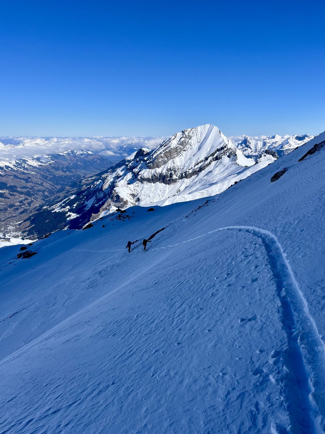 Um 9.00 Uhr auf der Engstligenalp gestartet. Es hat schon vom Anfang an 20 cm frischer Pulverschnee. Weiter nach oben hat es 30 cm. Beim Frühstückplatz um die 40 cm. Der Übergang zum Frühstückplatz ist nun gut gespurt. Danke Markus Schranz und Emanuel Holdener für die gute Spurarbeit. Vom Frühstückplatz bis zum Gipfel 30 cm frischer Pulverschnee. Auf dem Gipfel angenehm warm und fast Windstill. Sehr gute Fernsicht. Bombastische Abfahrt. Markus fuhr das Ammerten Tal runter. Es war eine traumhaft schöne Tour.