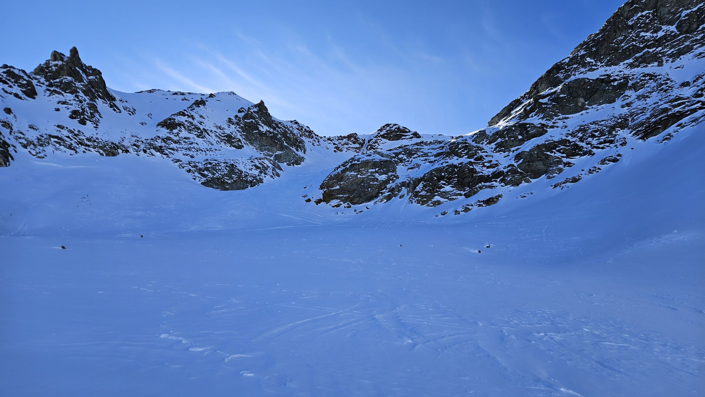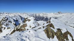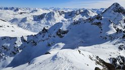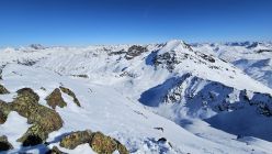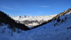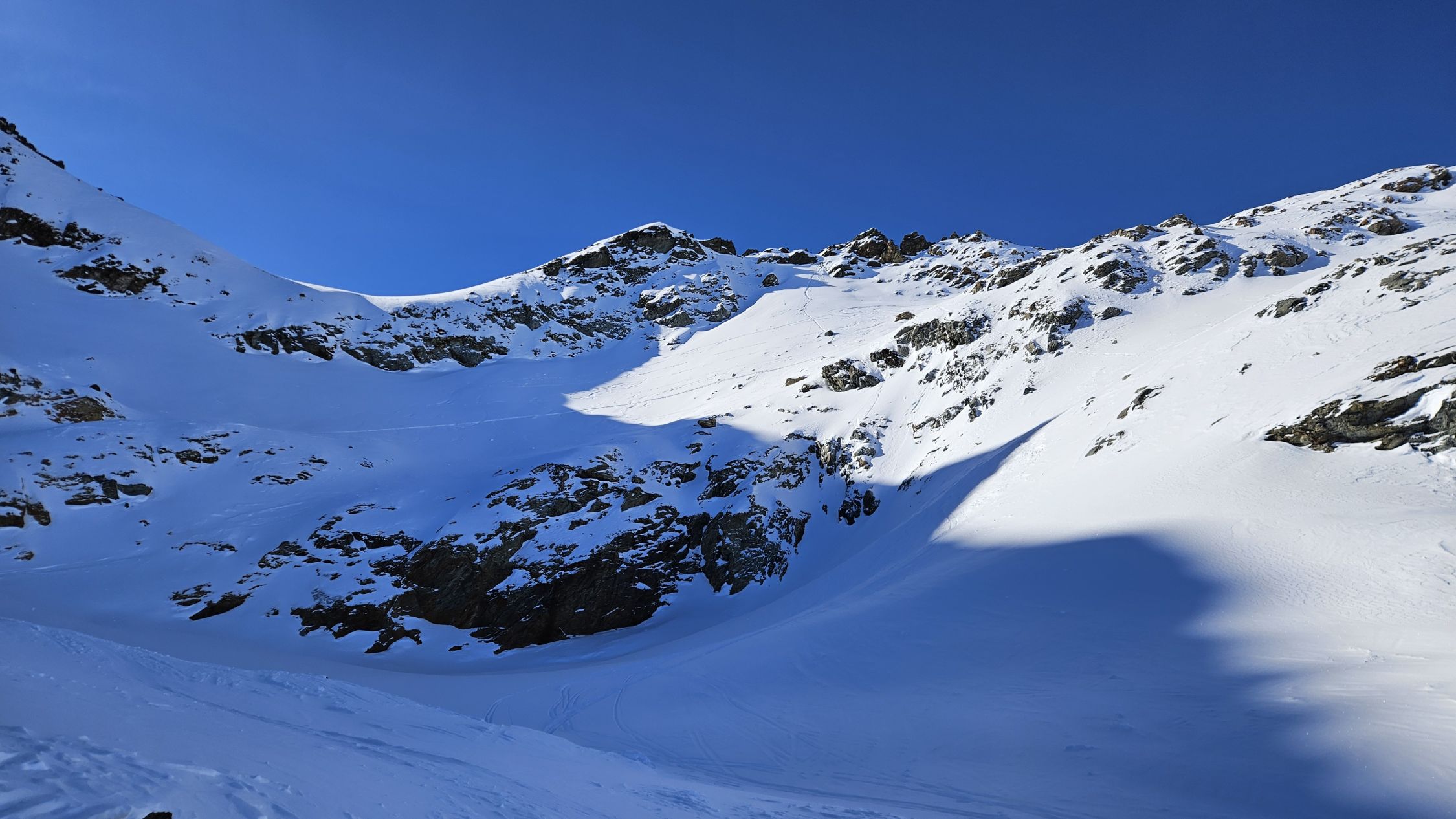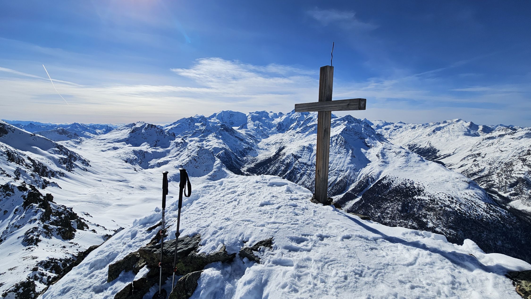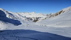 Gute Spur vorhanden und guter Trittschnee auf den Gipfel (Pickel und Steigeisen aktuell nicht nötig). Im oberen Teil und im Val Muragl mehrheitlich Pulver, insbesondere an Nord-exponierten Hängen bzw. Stellen.